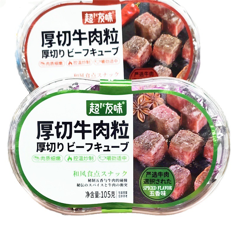 五香味厚切牛肉粒沙嗲味105g盒装即食肉粒包装零食