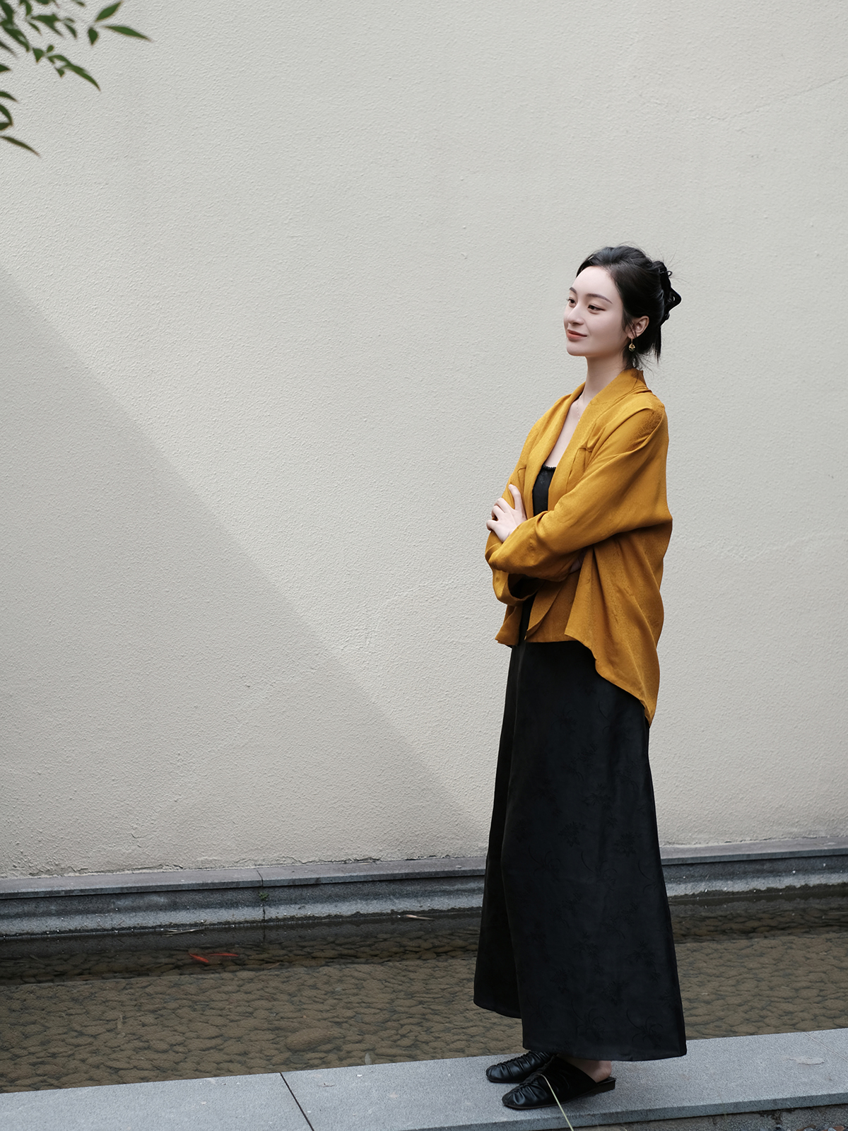 盛唐婧 |桑蚕丝提花宽松百搭T恤-黑色