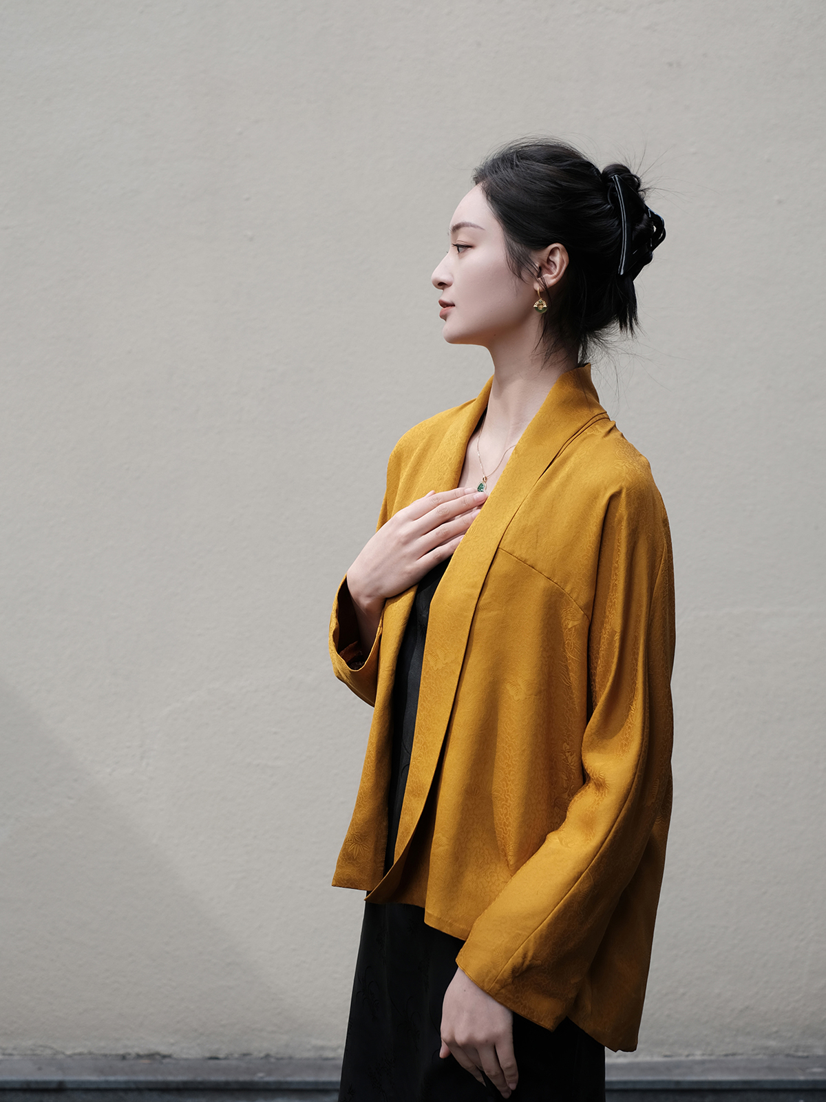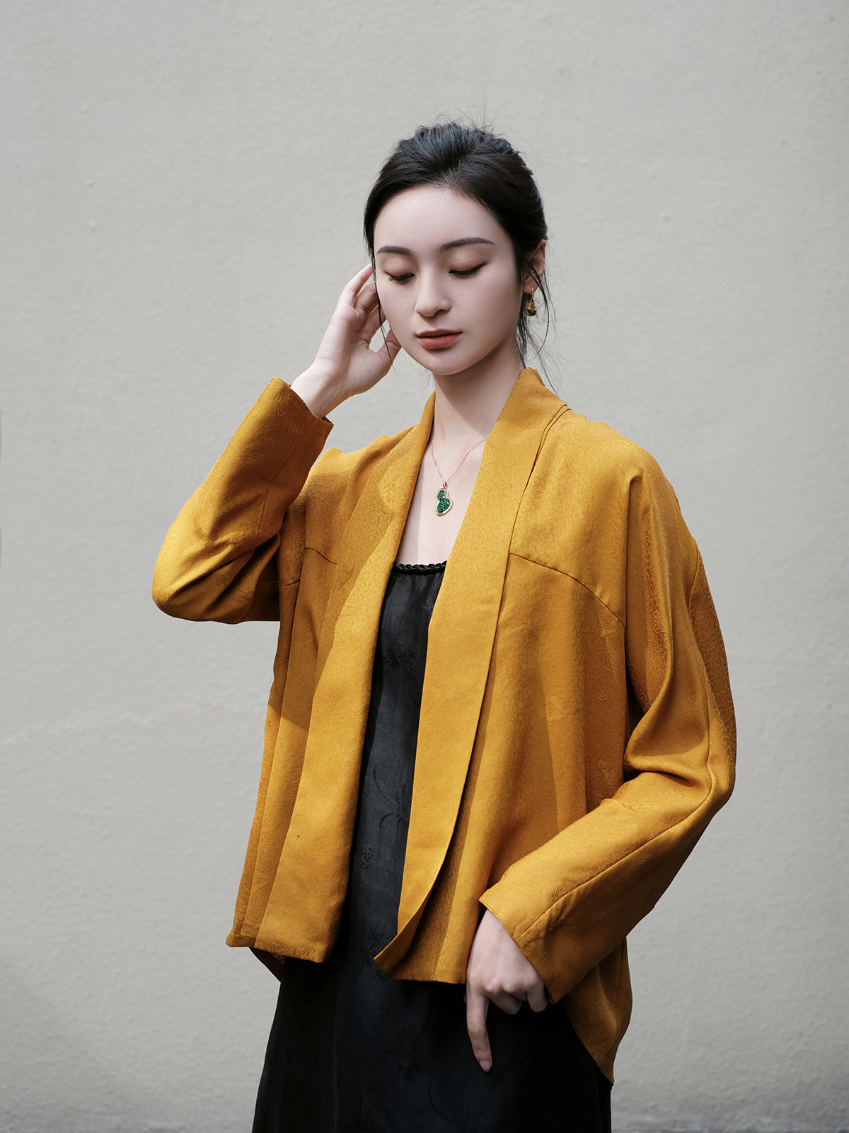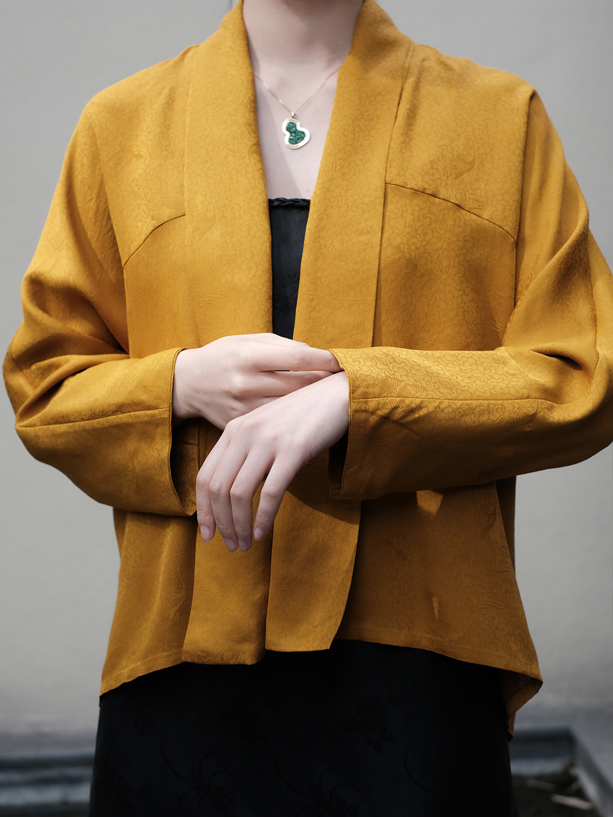 盛唐婧 |金鱼提花一字扣外套-淡绿