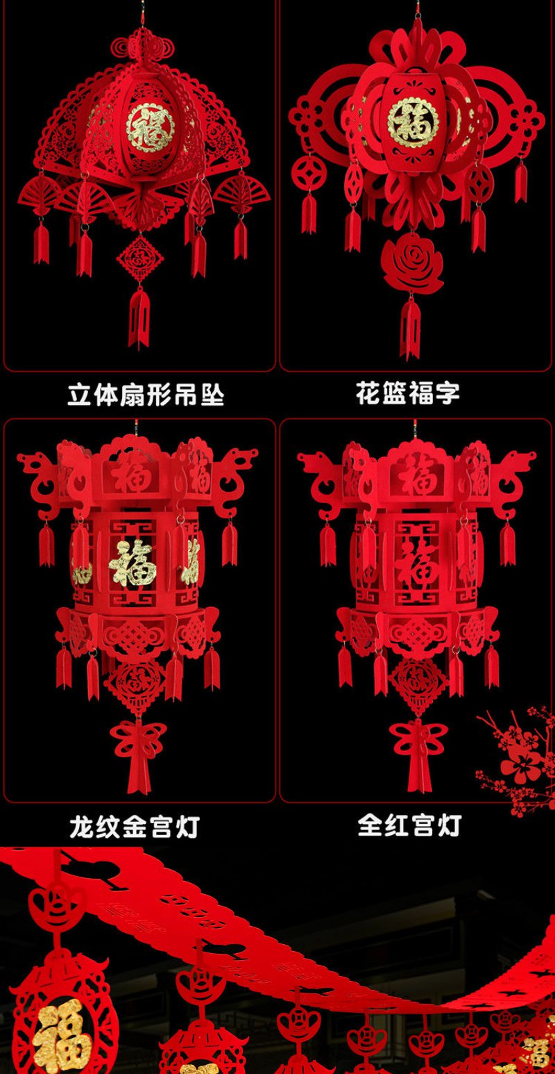 新年装饰福字灯笼春节过年布置大红灯笼宫灯家用无纺布小灯笼挂件