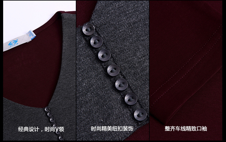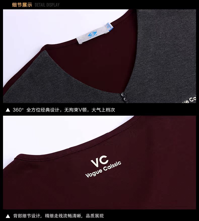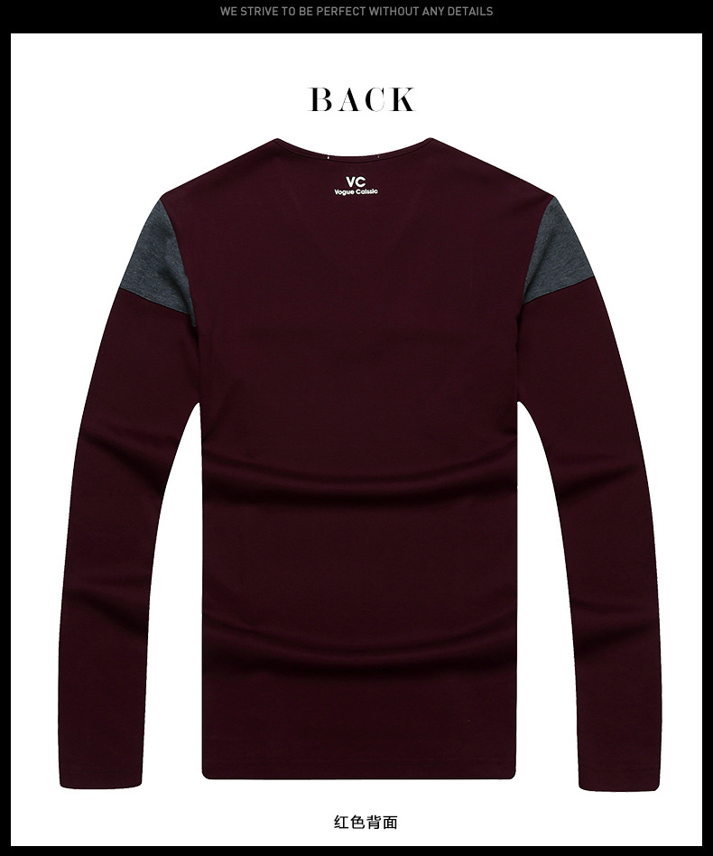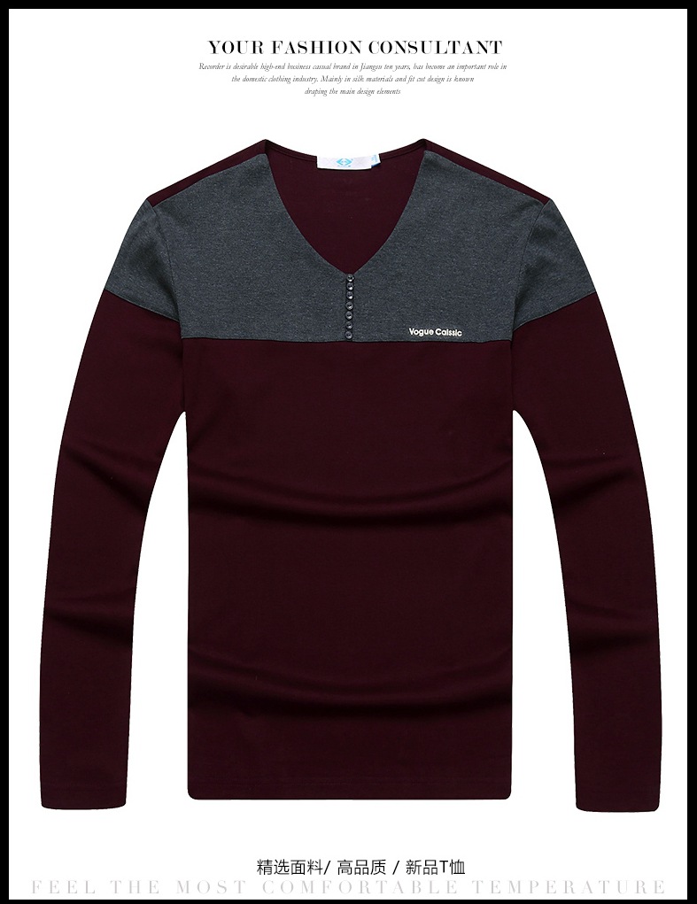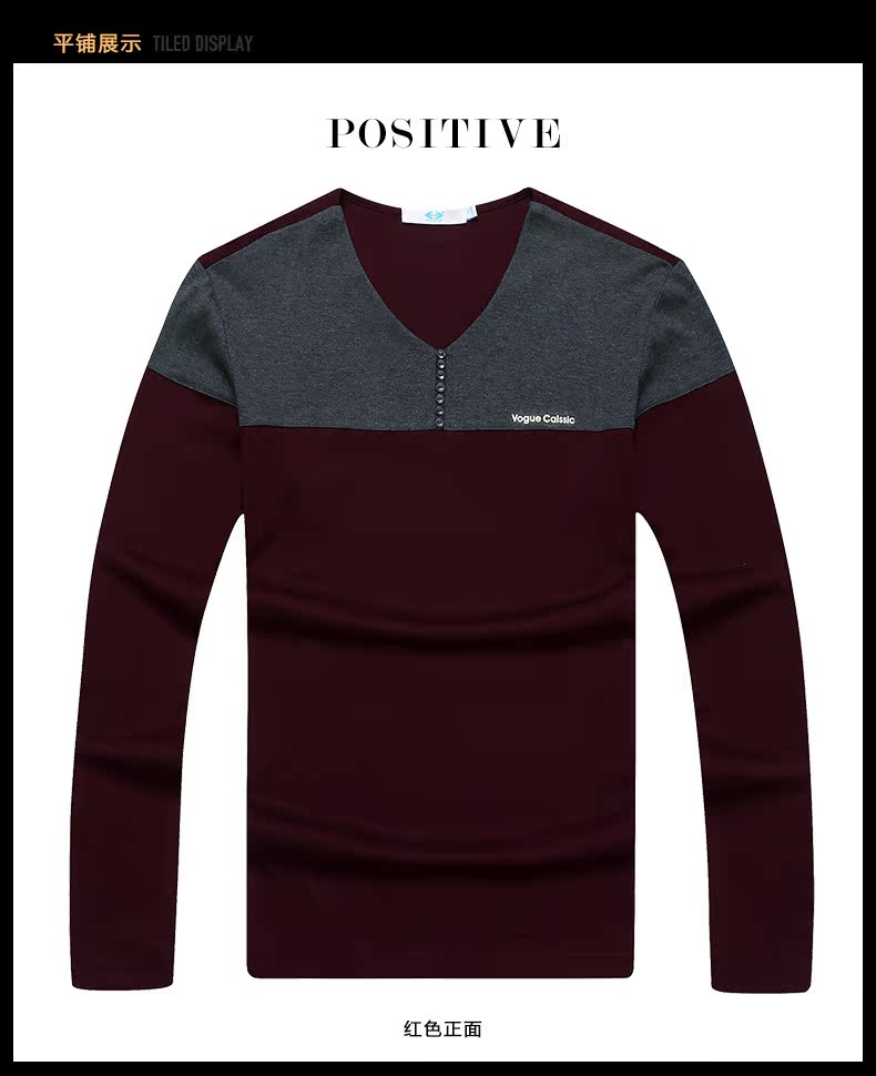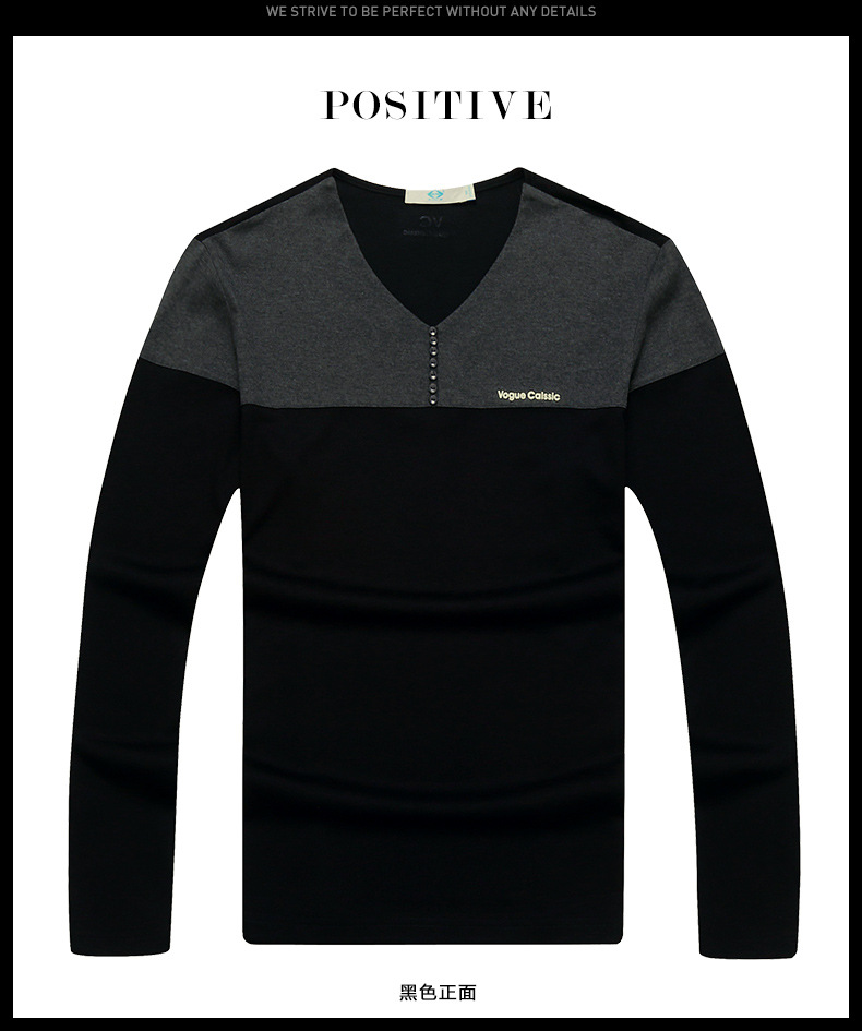 【服饰鞋包】个性潮流男装秋季新款男士长袖t恤男纯色v领纯棉T恤男士