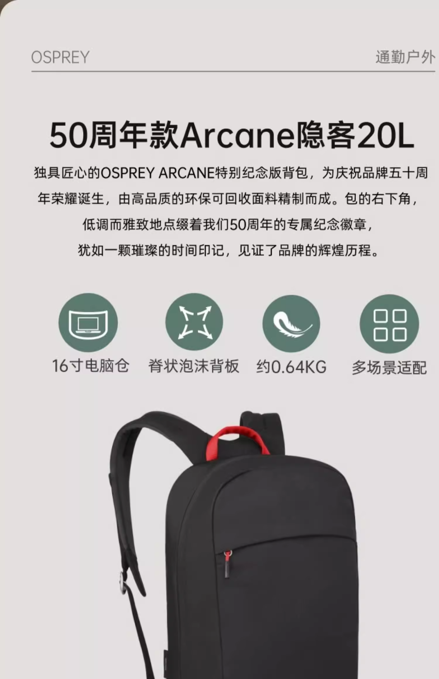 OSPREY Arcance LargeDay隐客20L双肩背包通勤包50周年纪念款2024