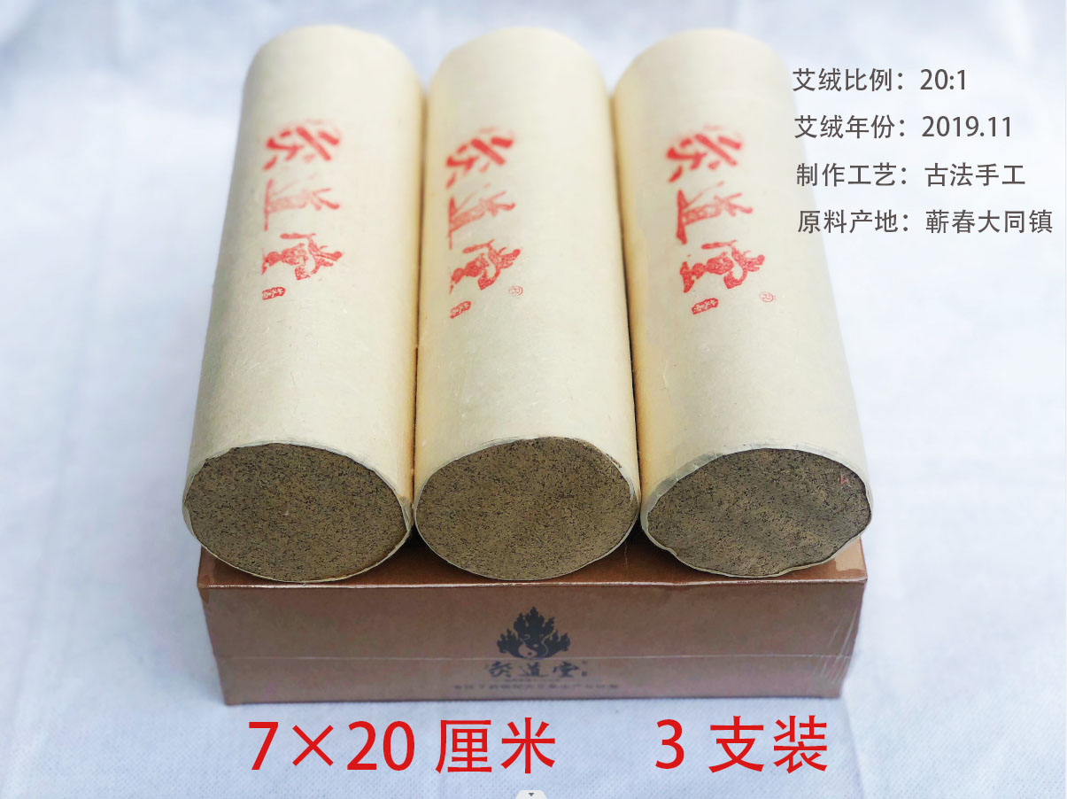 灸道堂陈年炮艾条,7厘米宽粗艾条,三年陈古法手工桑皮纸艾条3支
