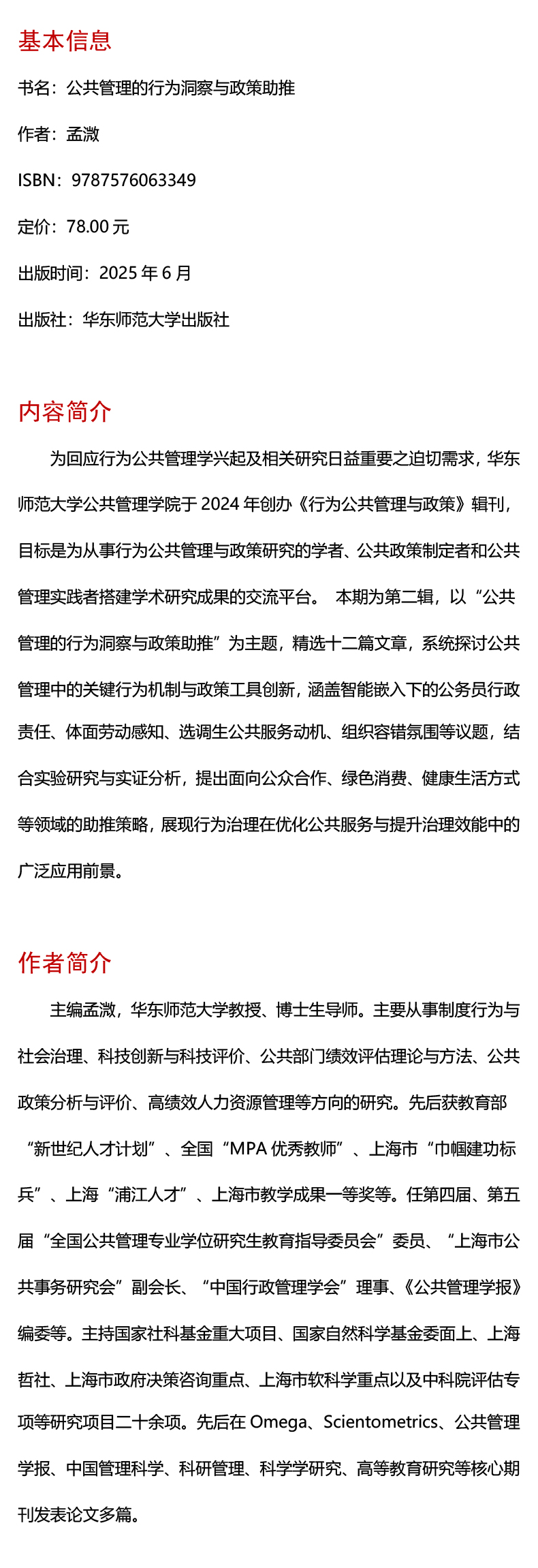 公共管理的行为洞察与政策助推 第二辑 行为公共管理与政策