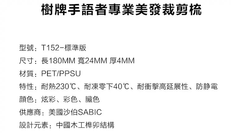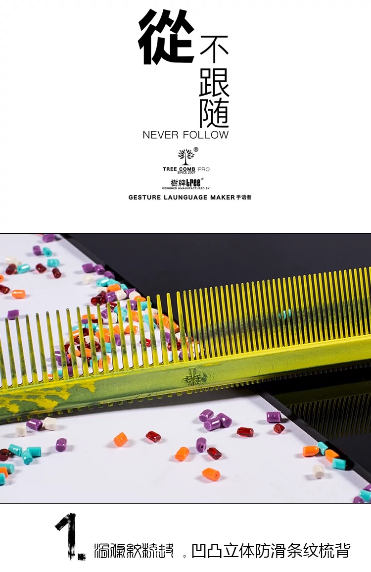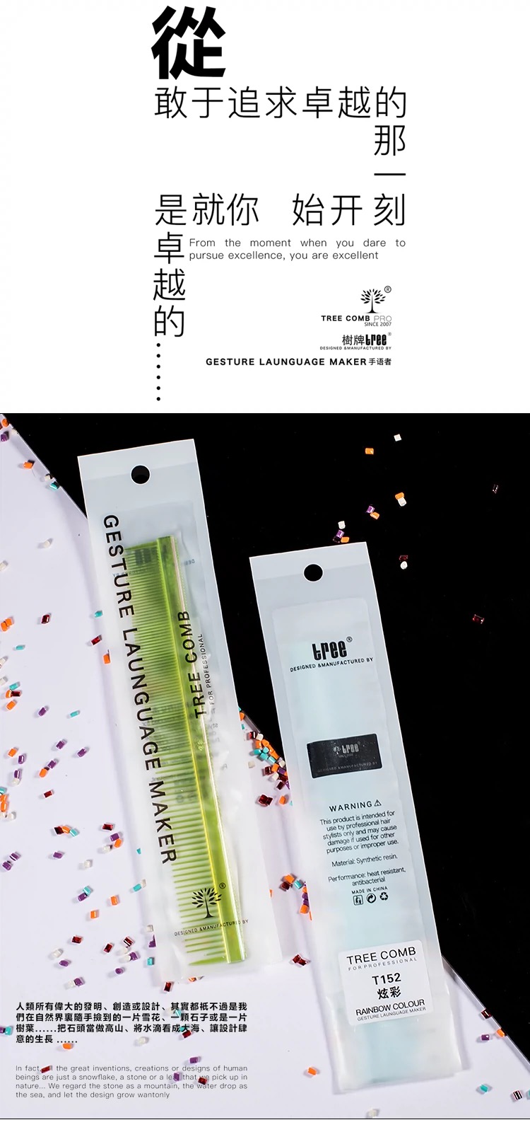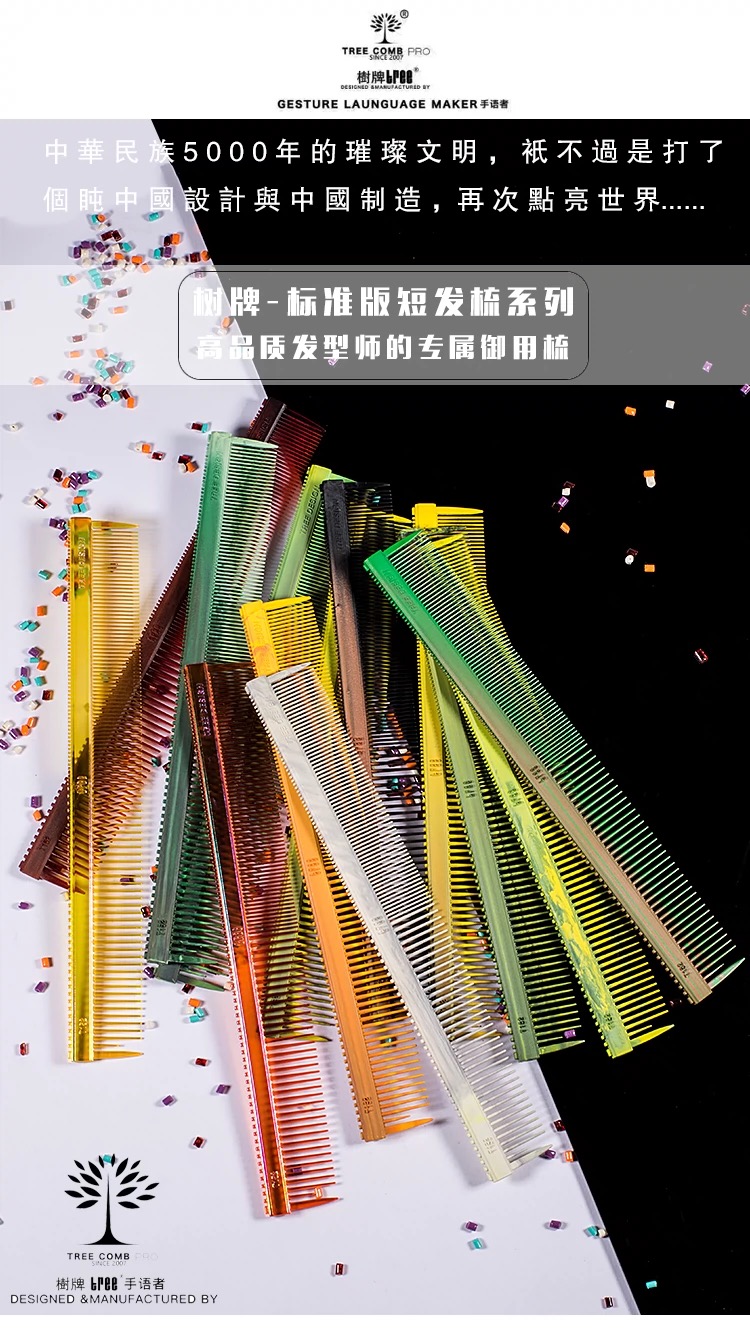 树牌梳子 TREE专业剪发梳子标准版短发梳系列T52常规色脏彩