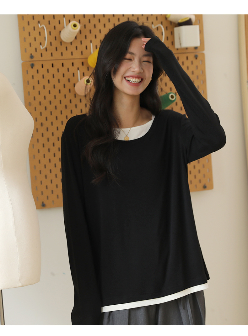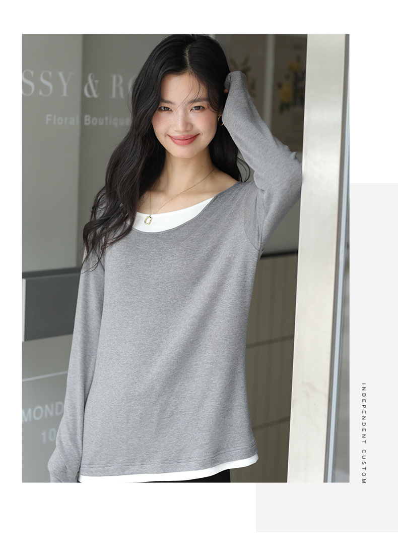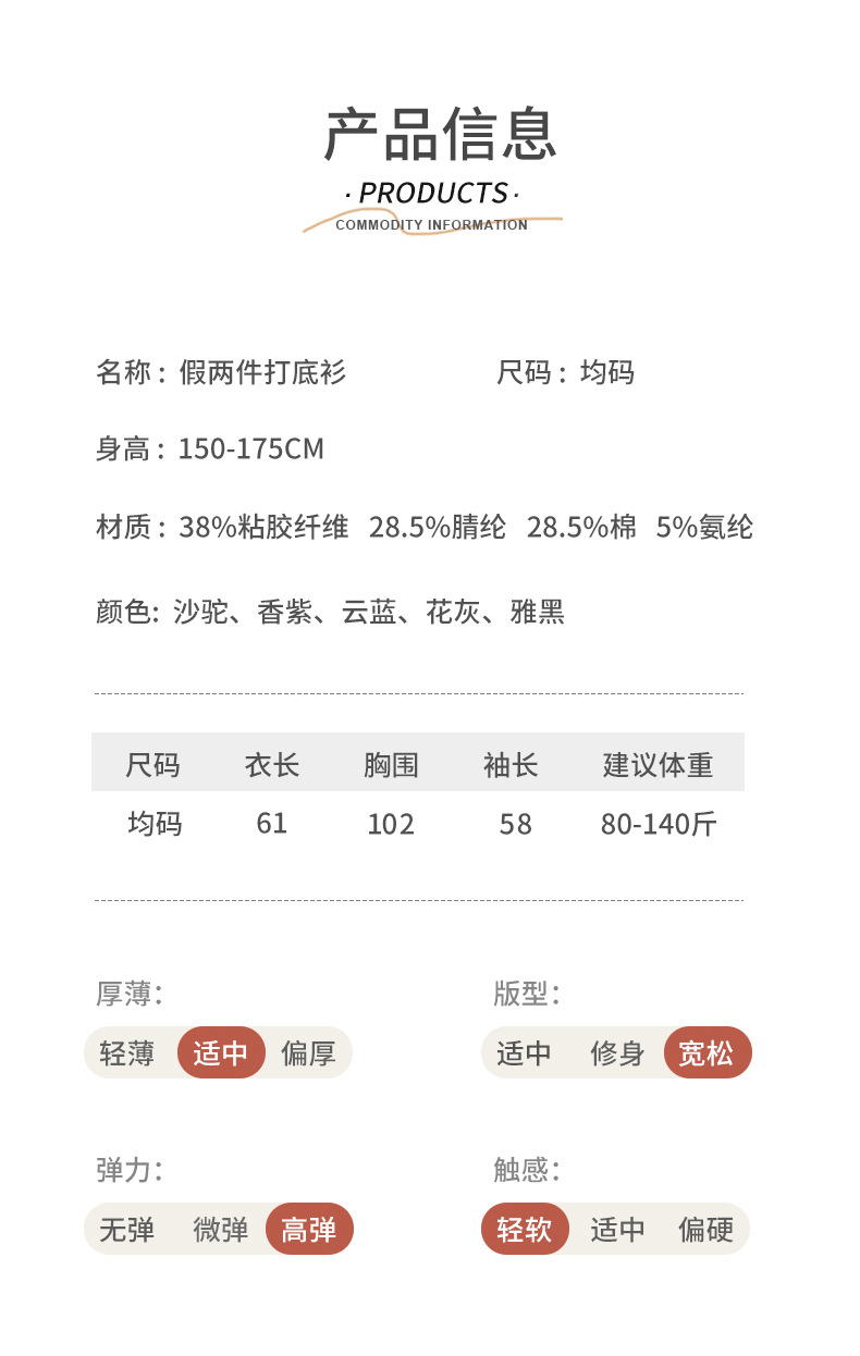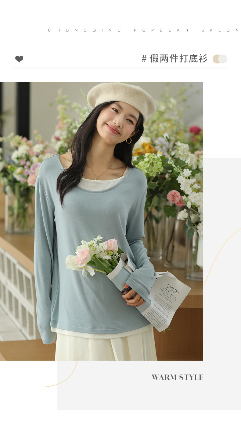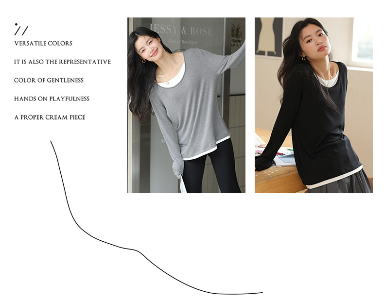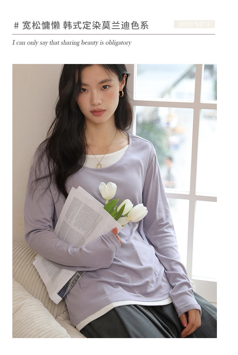 【春季马卡龙】假两件打底衫 V领宽松显瘦 宽松慵懒 拼接定染 莫兰迪色 柔软舒适显瘦