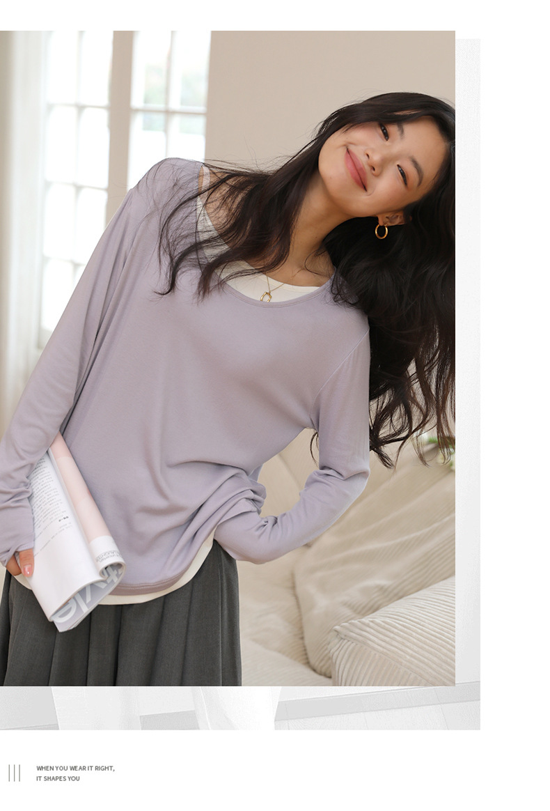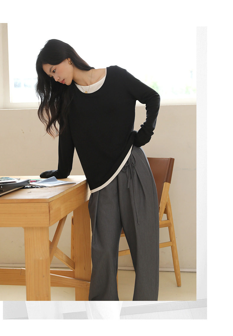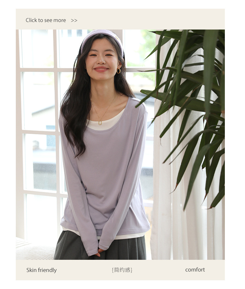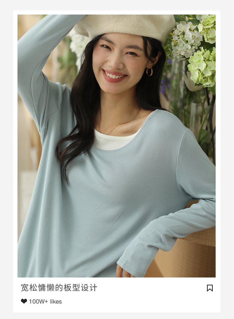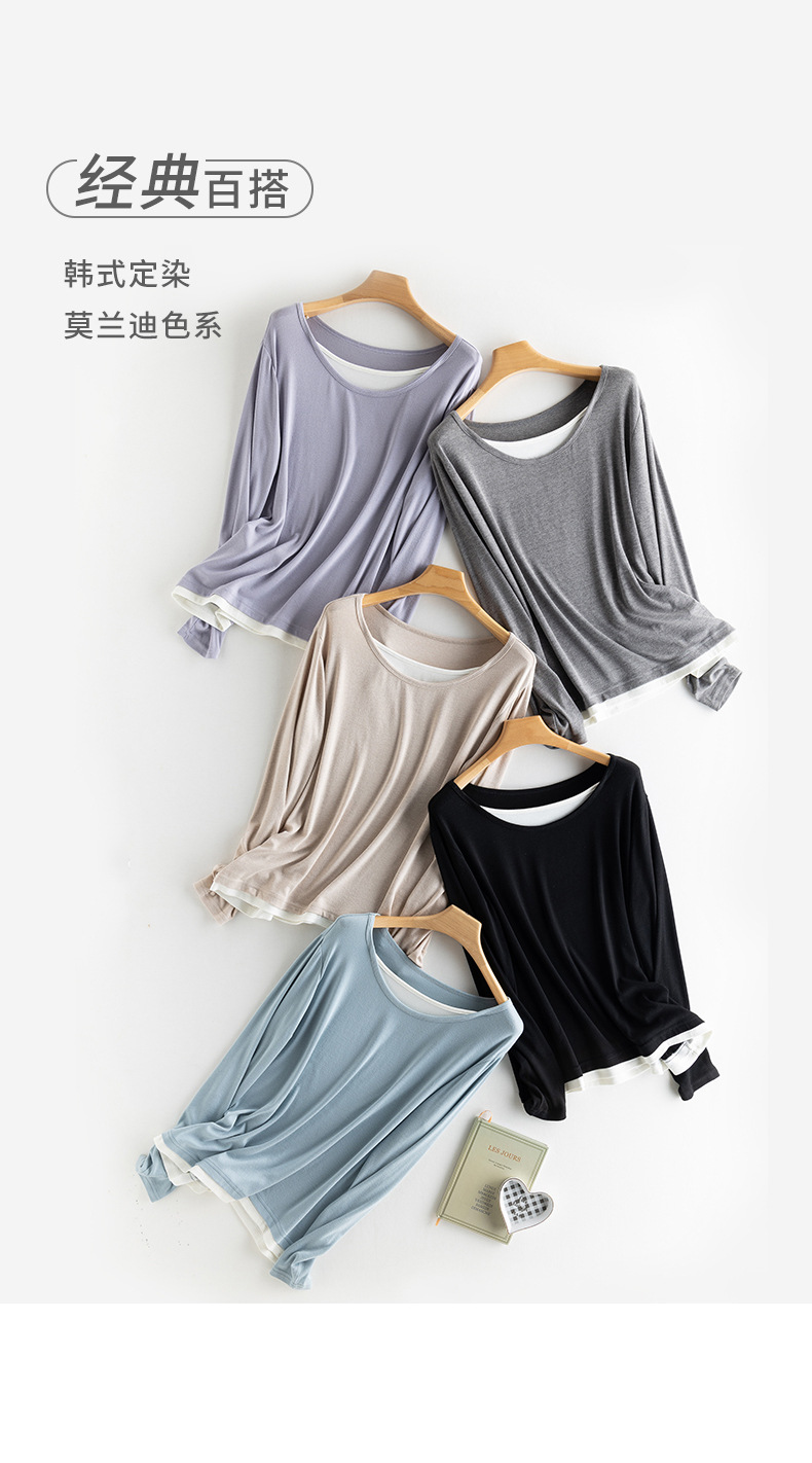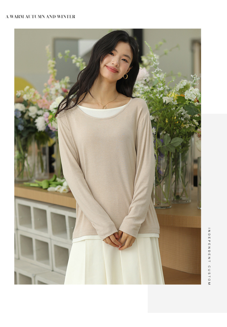 【春季马卡龙】假两件打底衫 V领宽松显瘦 宽松慵懒 拼接定染 莫兰迪色 柔软舒适显瘦