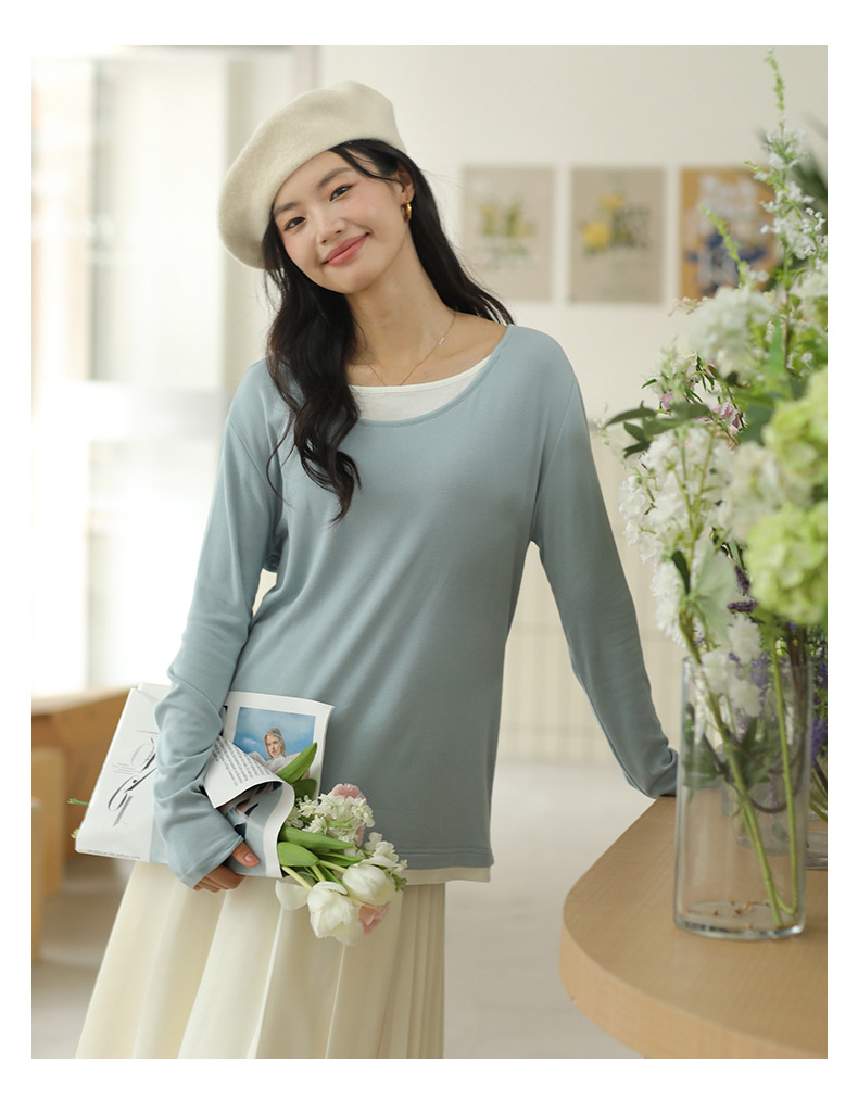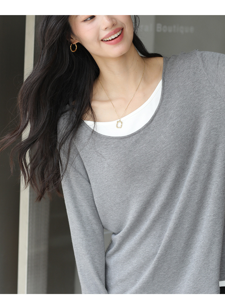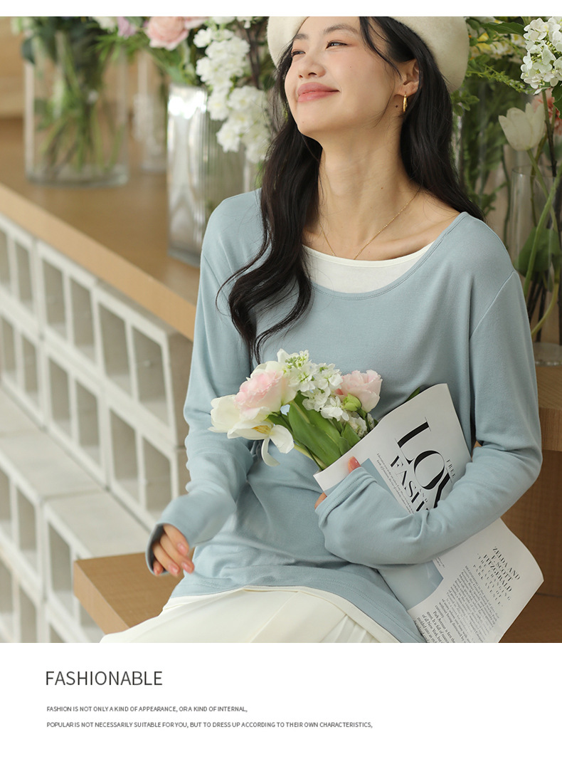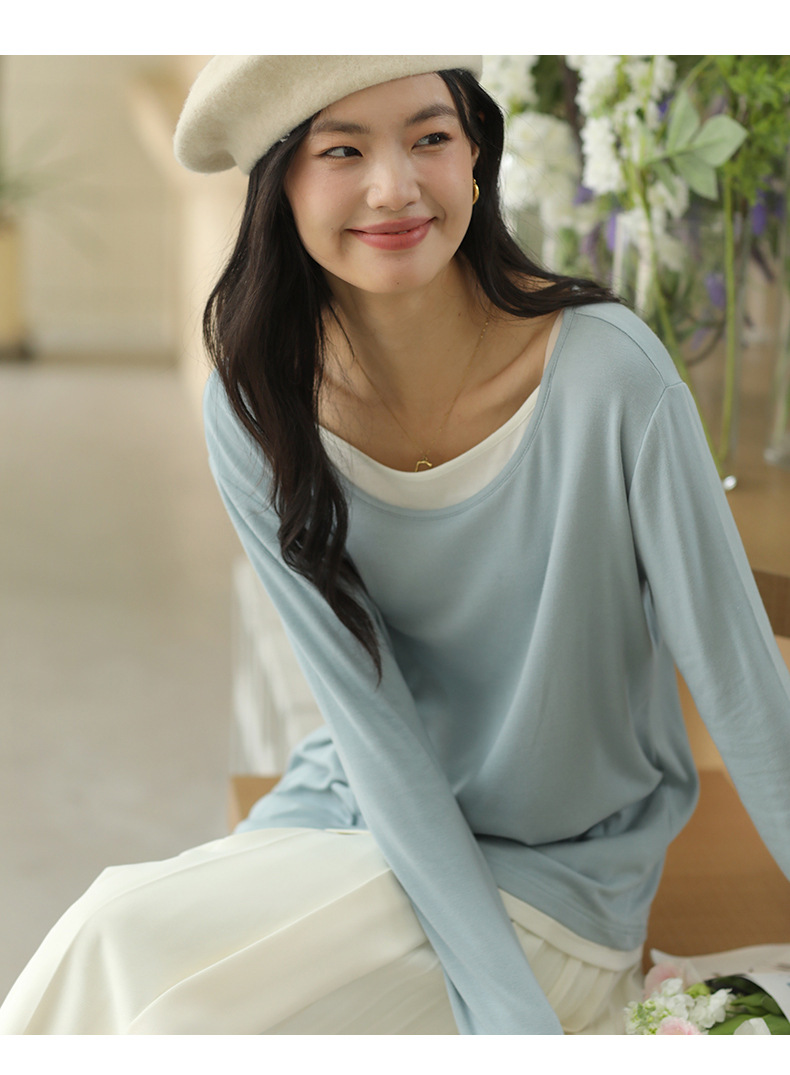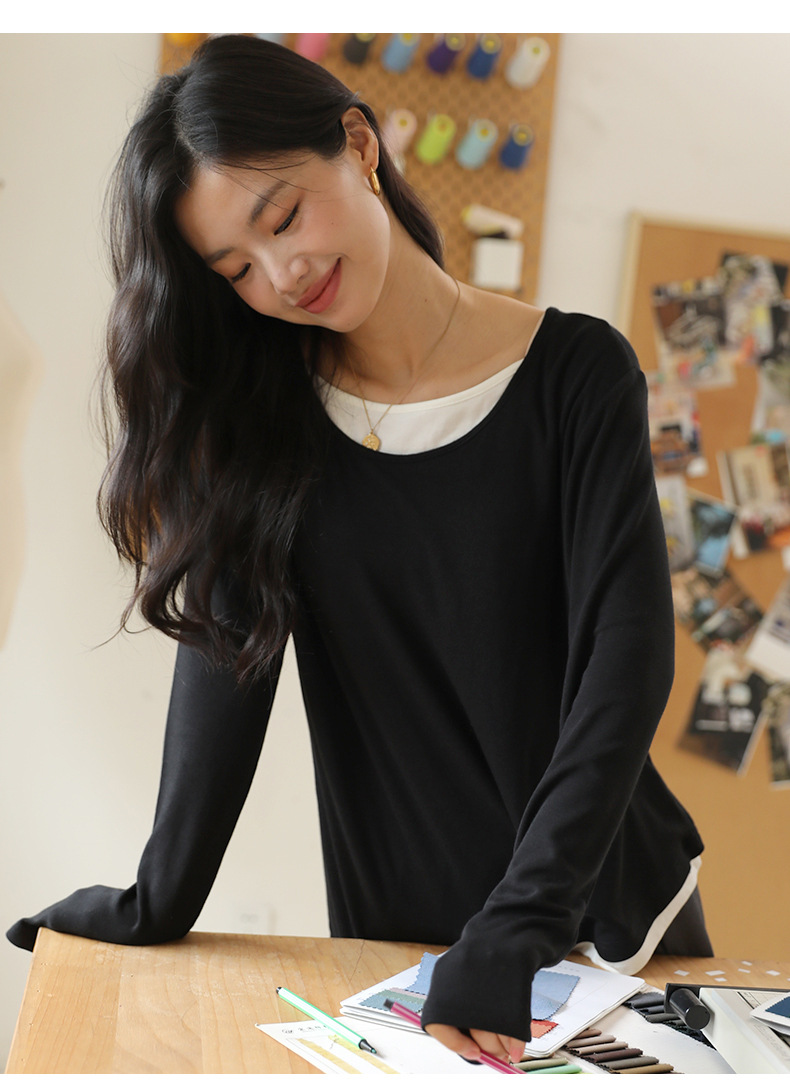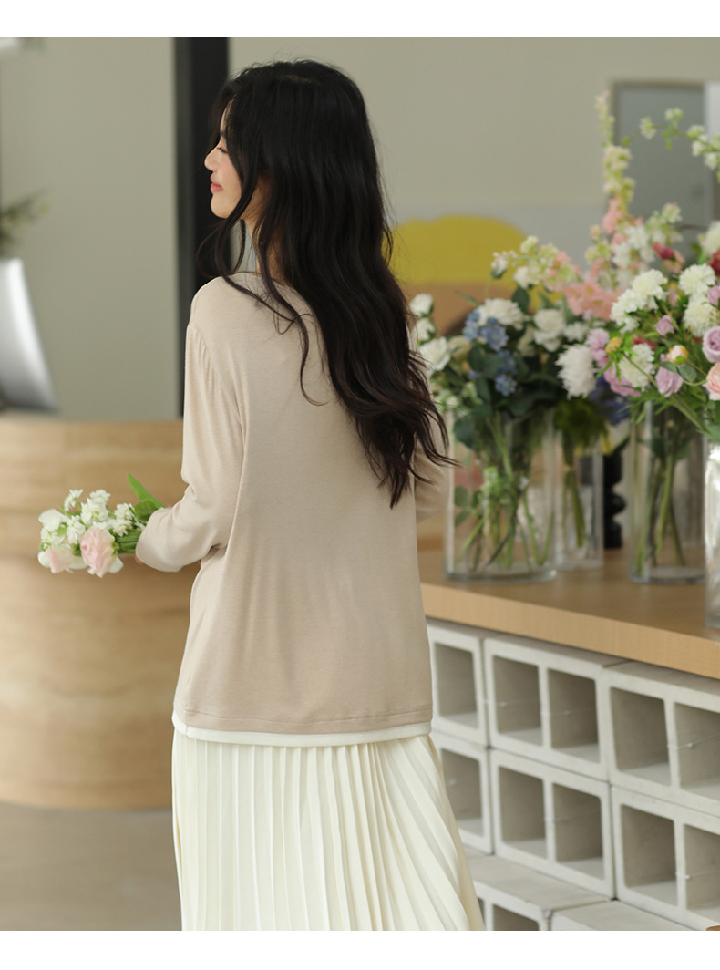 【春季马卡龙】假两件打底衫 V领宽松显瘦 宽松慵懒 拼接定染 莫兰迪色 柔软舒适显瘦