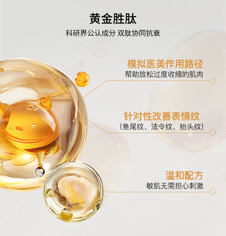 A1外泌体多肽焕活精华,搭配了科研界公认的“黄金胜肽”组合——棕榈酰寡肽与四肽-7,双肽协同发力,让抗老事半功倍。其中,四肽-7能模拟医美作用路径,帮助放松过度收缩的面部肌肉,针对性让各种纹路变淡;棕榈酰寡肽则能辅助刺激胶原蛋白生成,让肌肤逐渐恢复饱满紧致,告别松垮感,摸起来更有弹性。