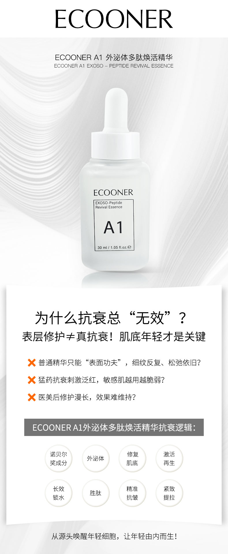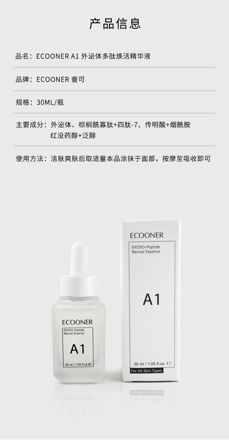 [屁侠推荐.pippa]ECOONER/壹可A1外泌体多肽焕活精华液30ml紧致淡纹修护提亮肤色