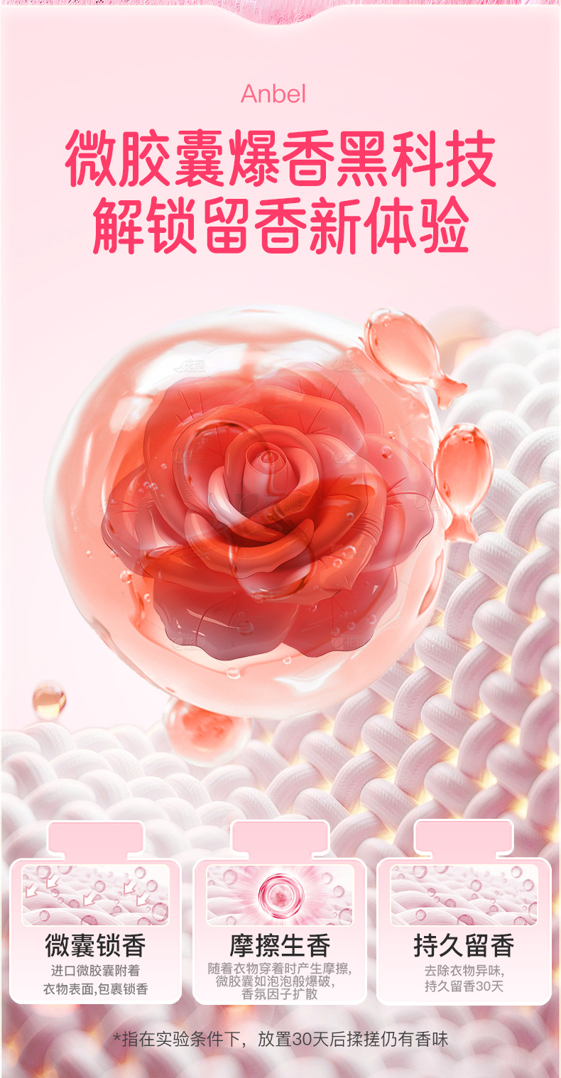 安贝儿 香水玫瑰3D洗衣凝珠一桶装(3腔洗衣凝珠)72粒 【多规格可选】
