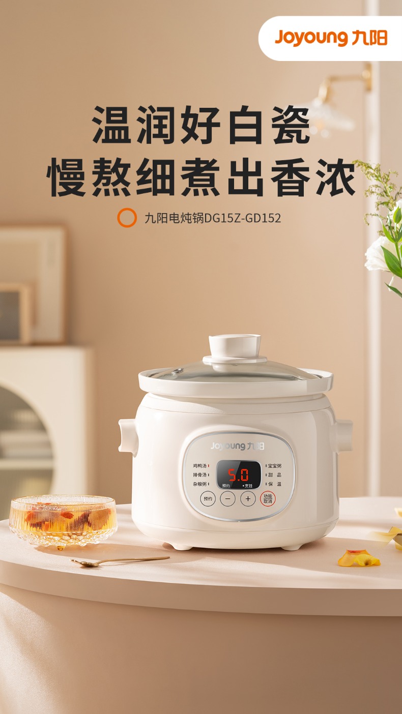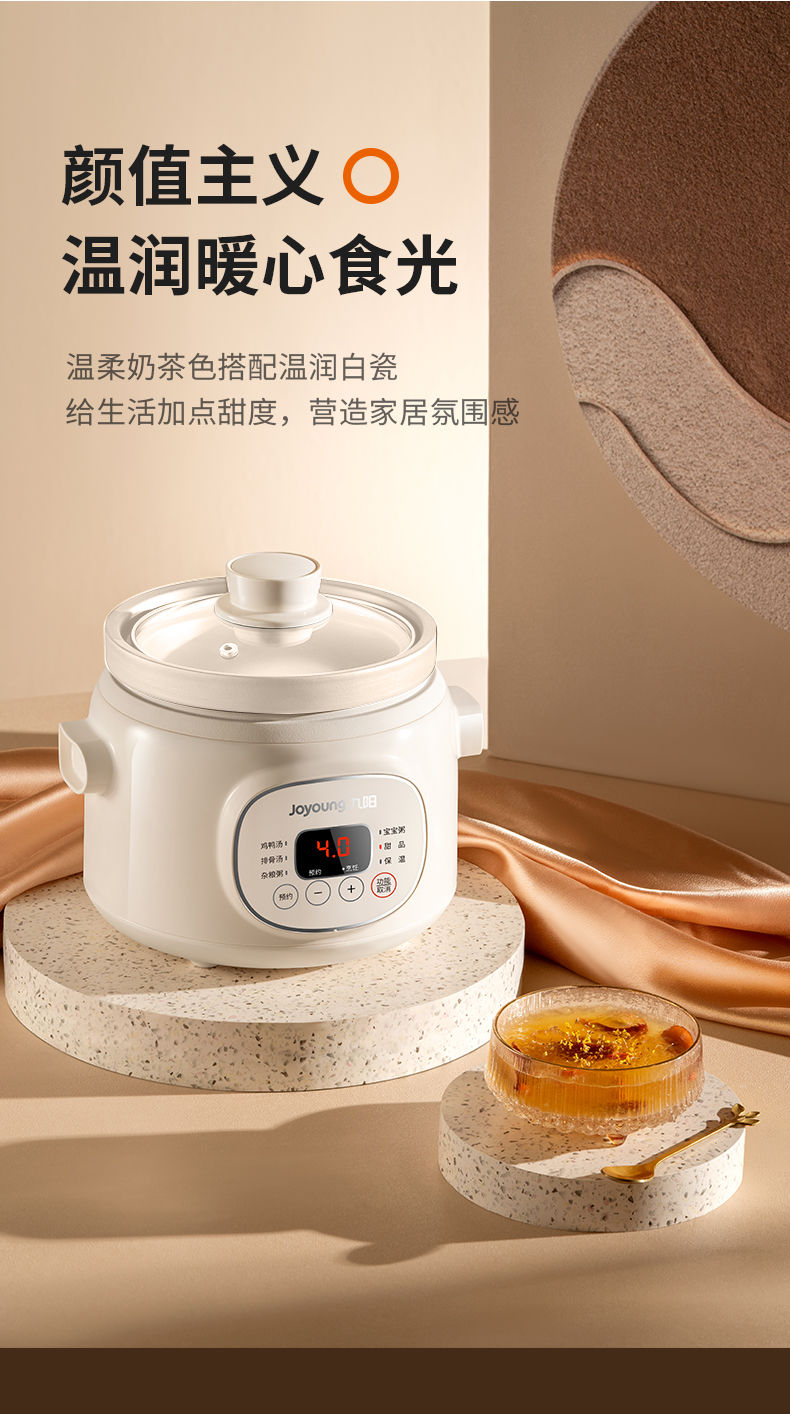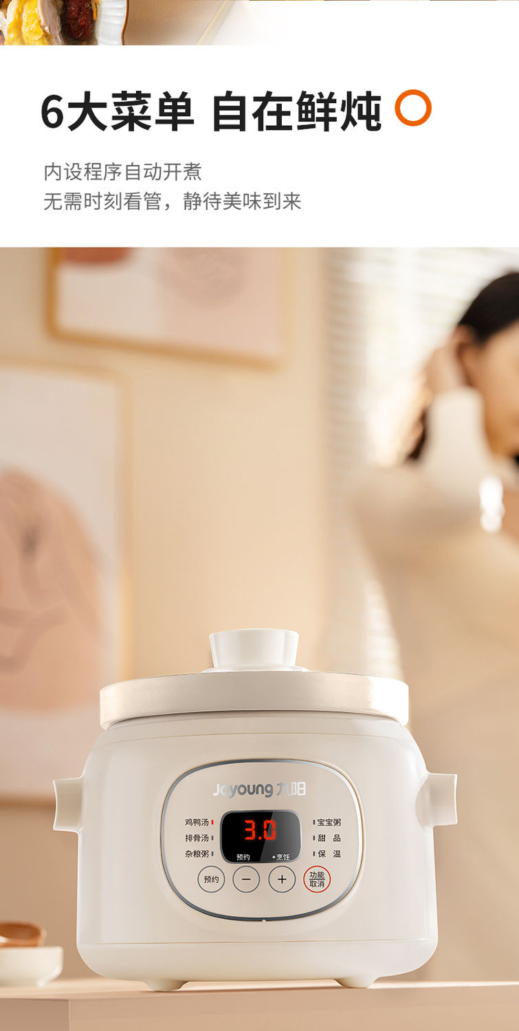九阳慢炖电炖锅1.0L家用陶瓷煲电炖盅燕窝锅宝宝辅食炖汤盅煮粥锅