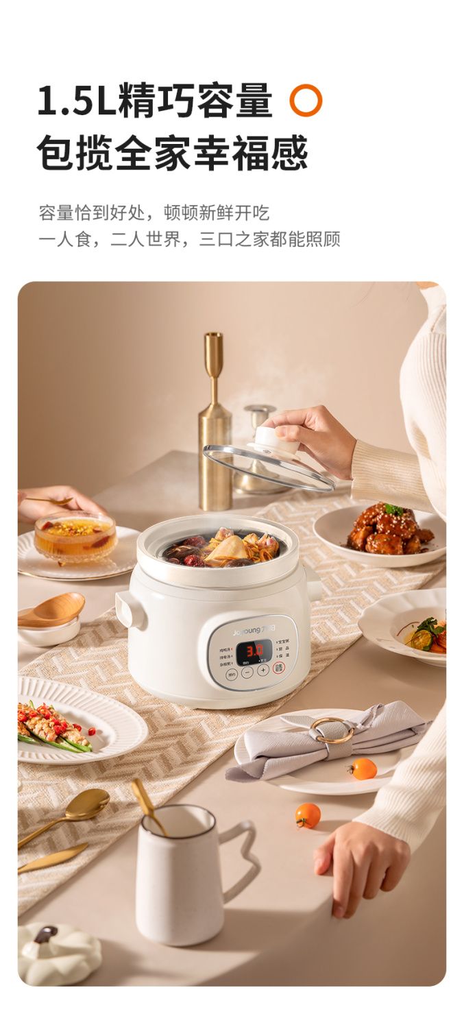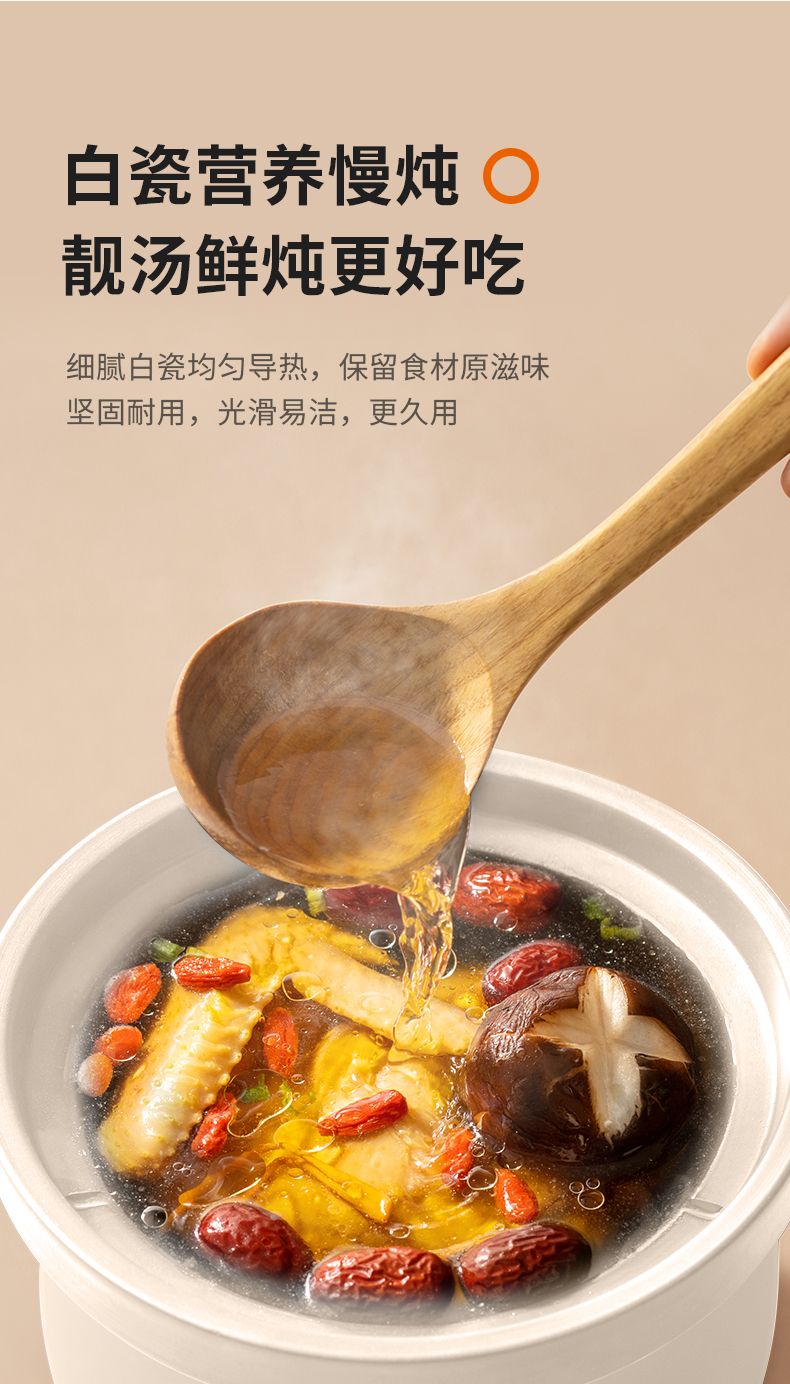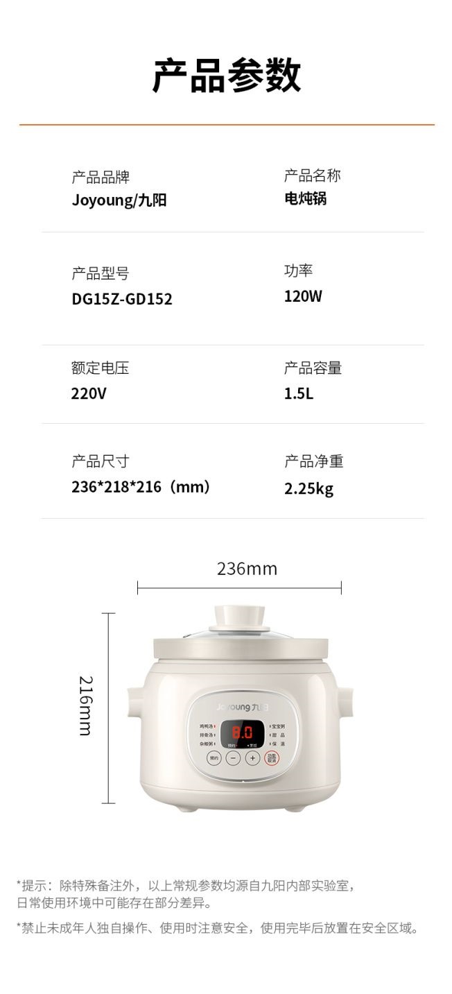 九阳慢炖电炖锅1.0L家用陶瓷煲电炖盅燕窝锅宝宝辅食炖汤盅煮粥锅