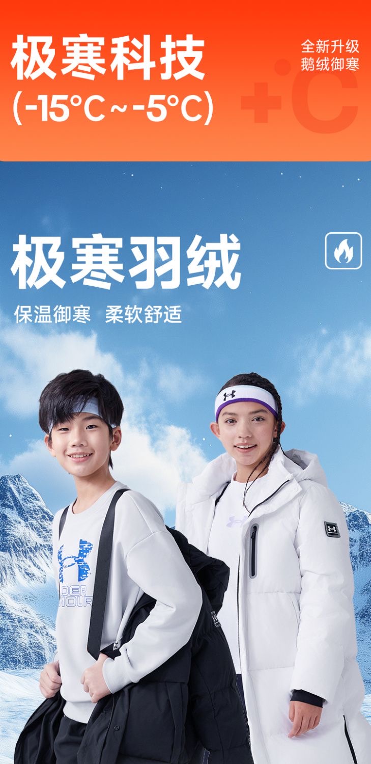 【12月-爆款福利】Under Armour安德玛儿童2024冬款极寒鹅绒中长羽绒服244106159超低折扣