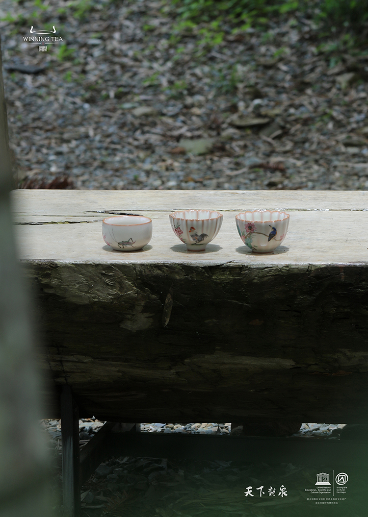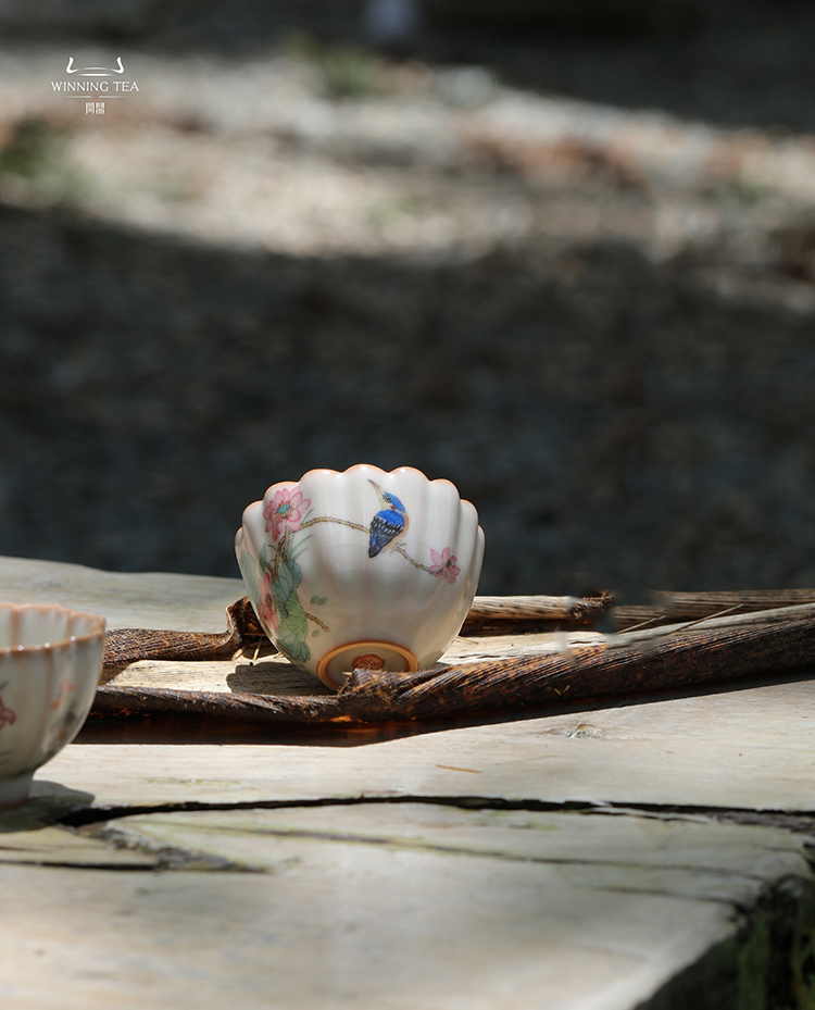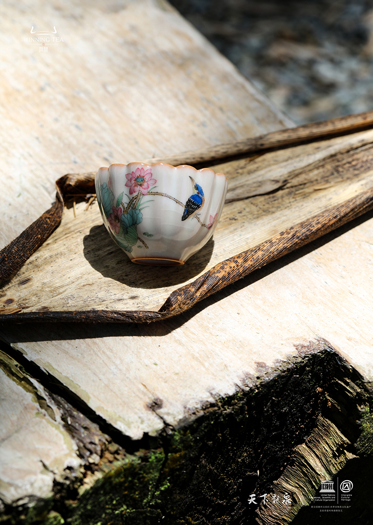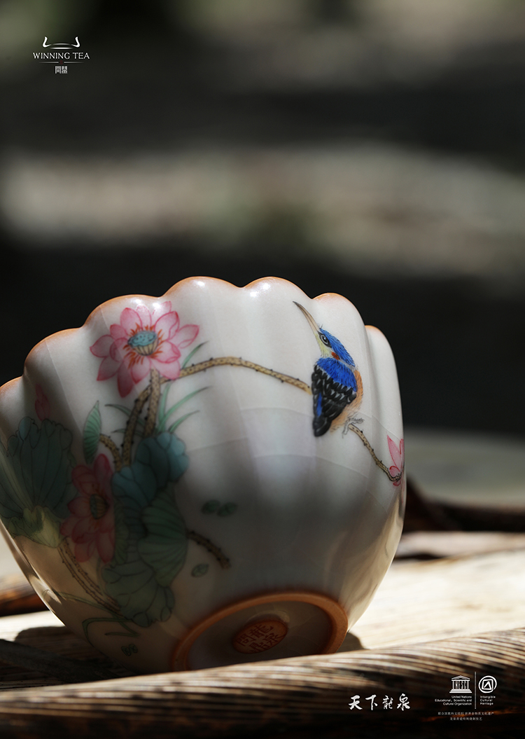 龙泉问鼎彩绘哥窑蕊香杯 (绿鬓朱颜)