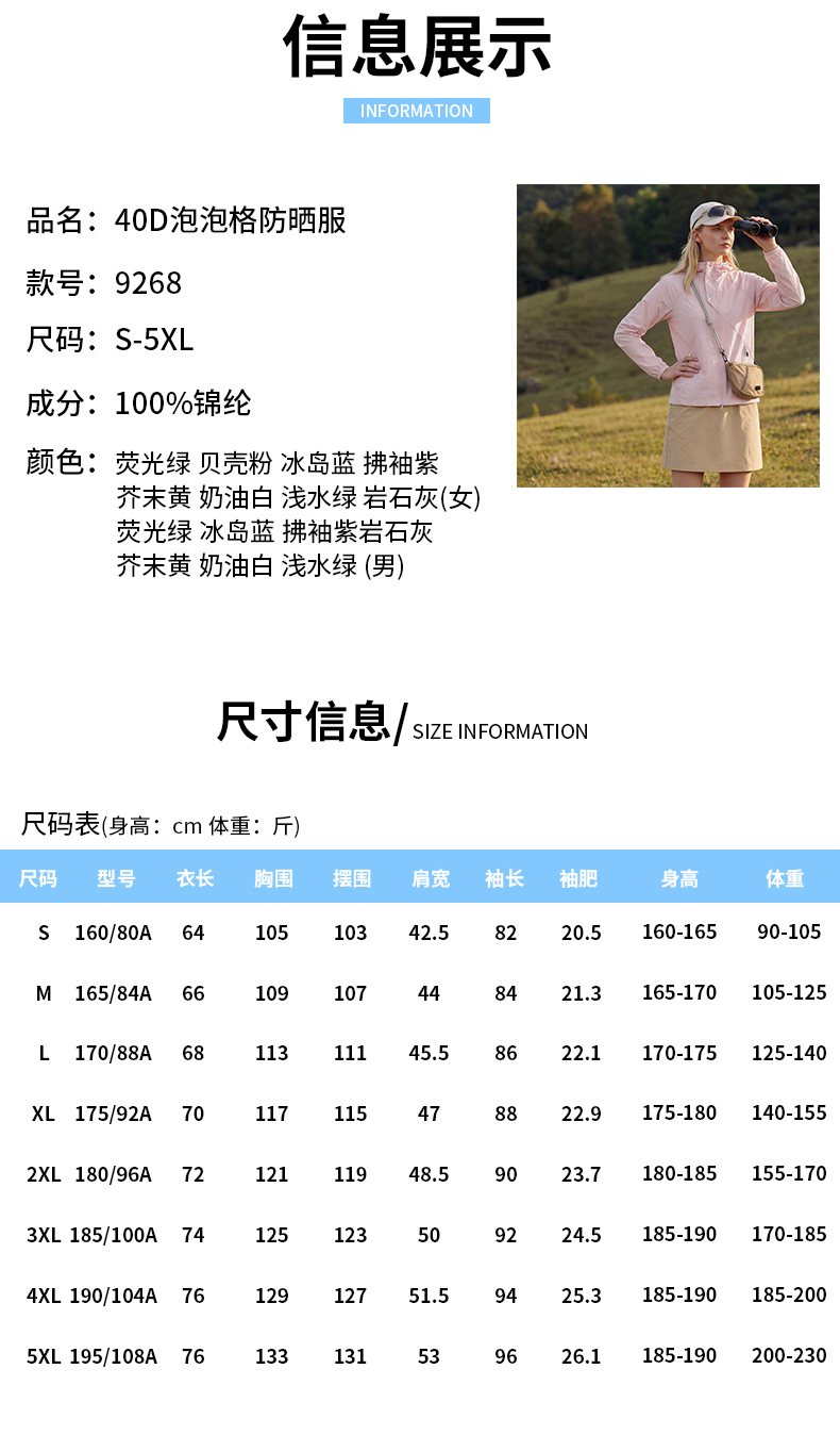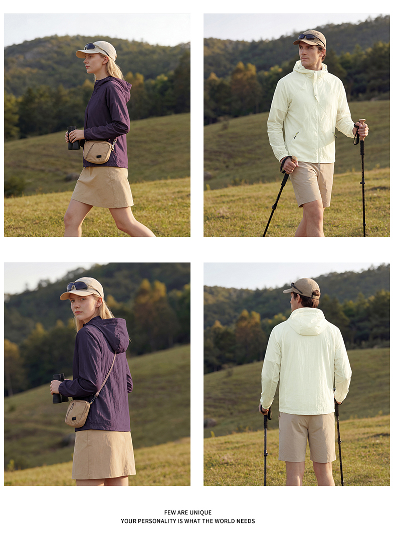 【SCWJ-硬核机能泡泡格情侣防晒服】凉感面料防晒UPF50+、防水防油污抗皱耐磨、男女同款修身版型、做工走线精细、时尚潮流百搭山系风、一件=防晒衣+防晒帽+防晒袖+防晒霜+薄外套+太阳伞