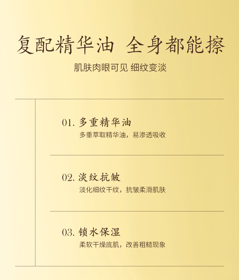 【舒纹橄榄精华油】升级油萃配方,以油润肤全身细腻舒纹,轻盈吸收不粘腻不沾衣,持效改善脆弱易敏肤质,,保湿抗皱改善干燥粗糙身体护肤油QQ