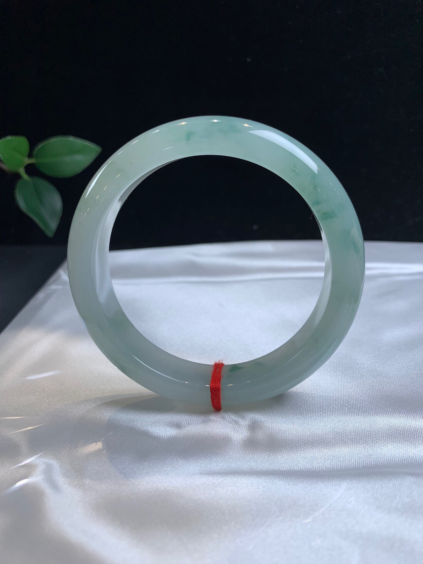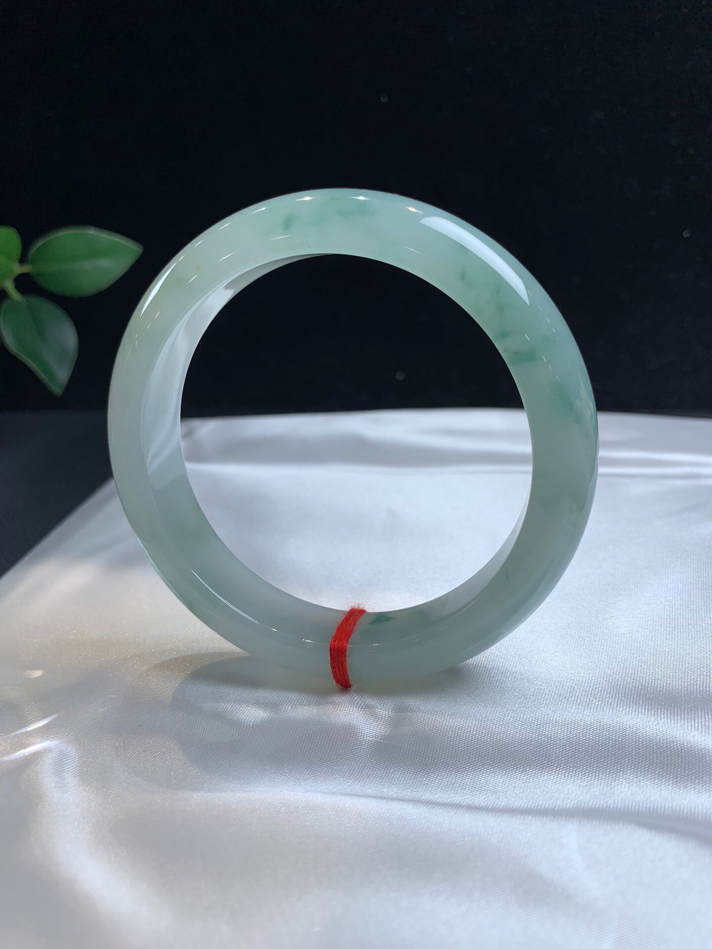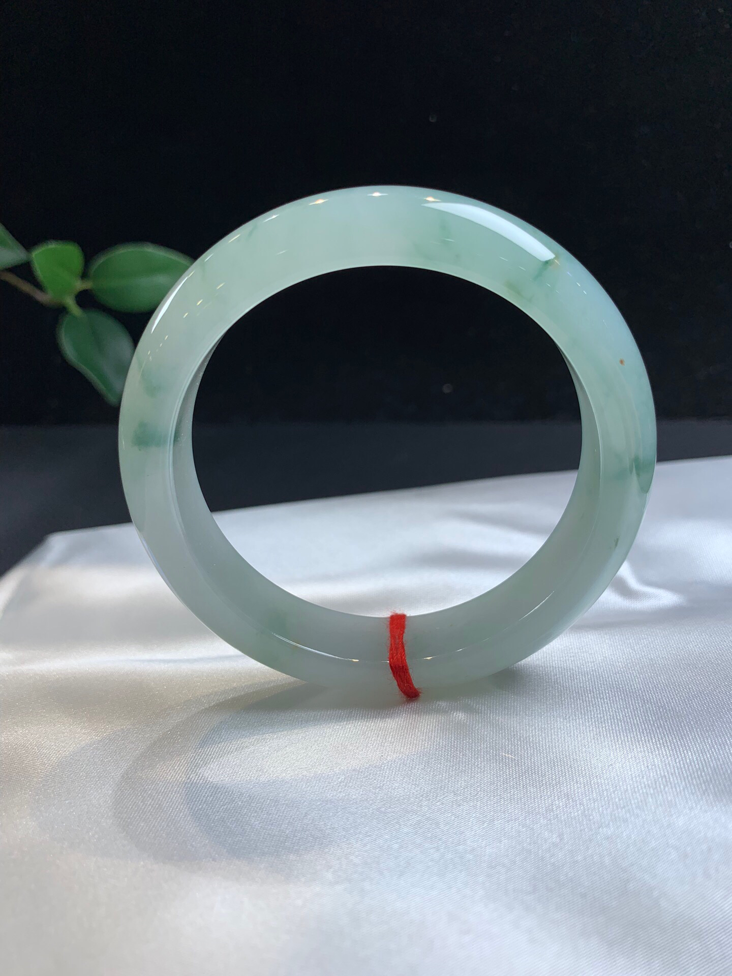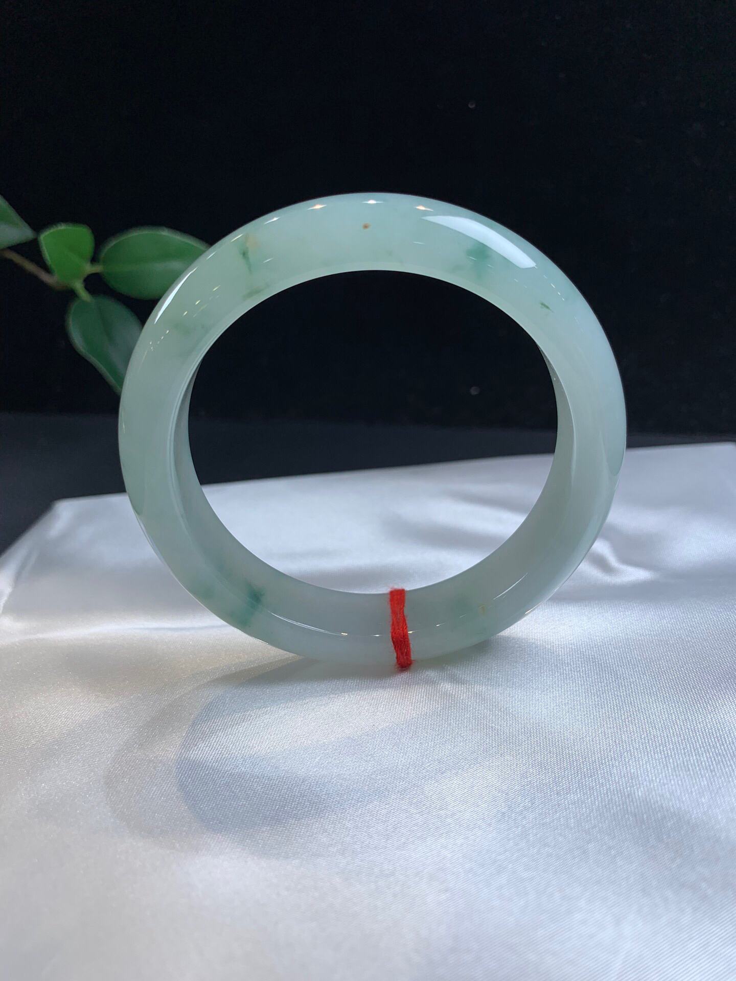 612758,57.5冰飘花正圈手镯,13-8.5mm,整体底妆均匀,油油的,局部飘些清新淡雅的兰花,清爽,完美,超值价💰42200 #优石客珠宝#香玉荟萃