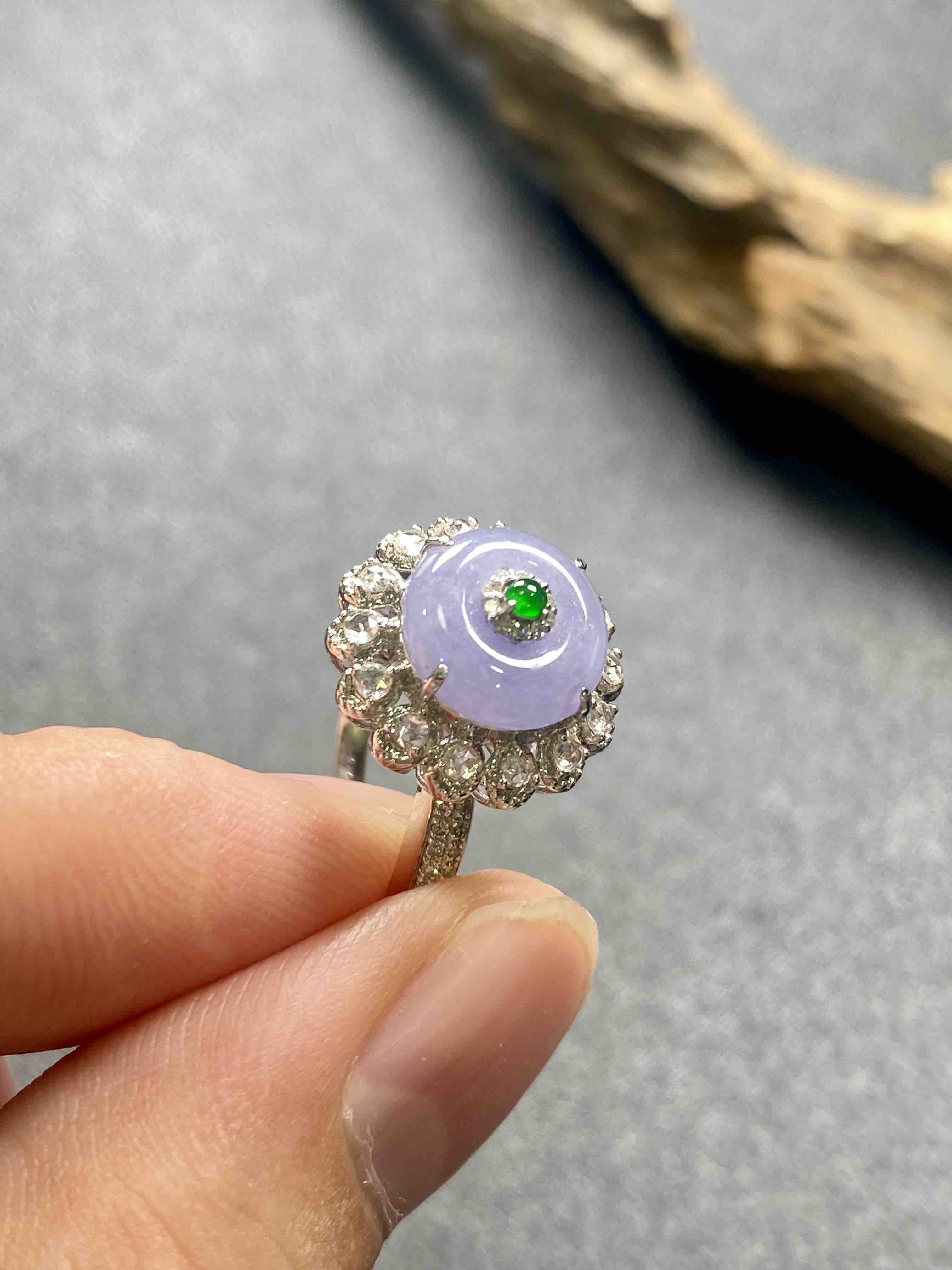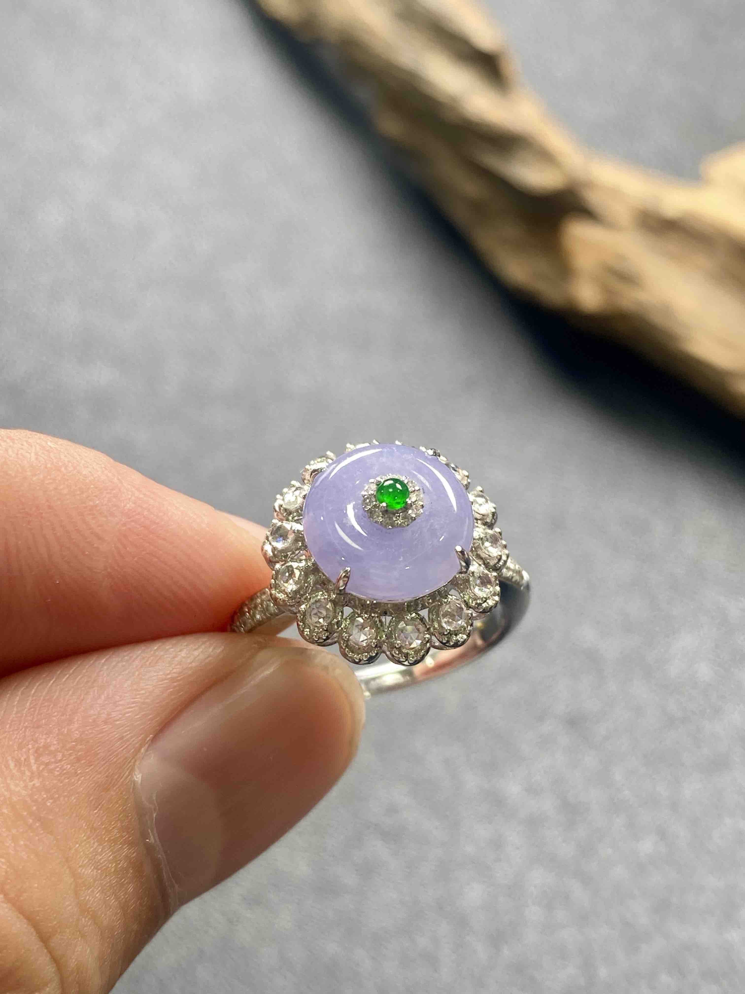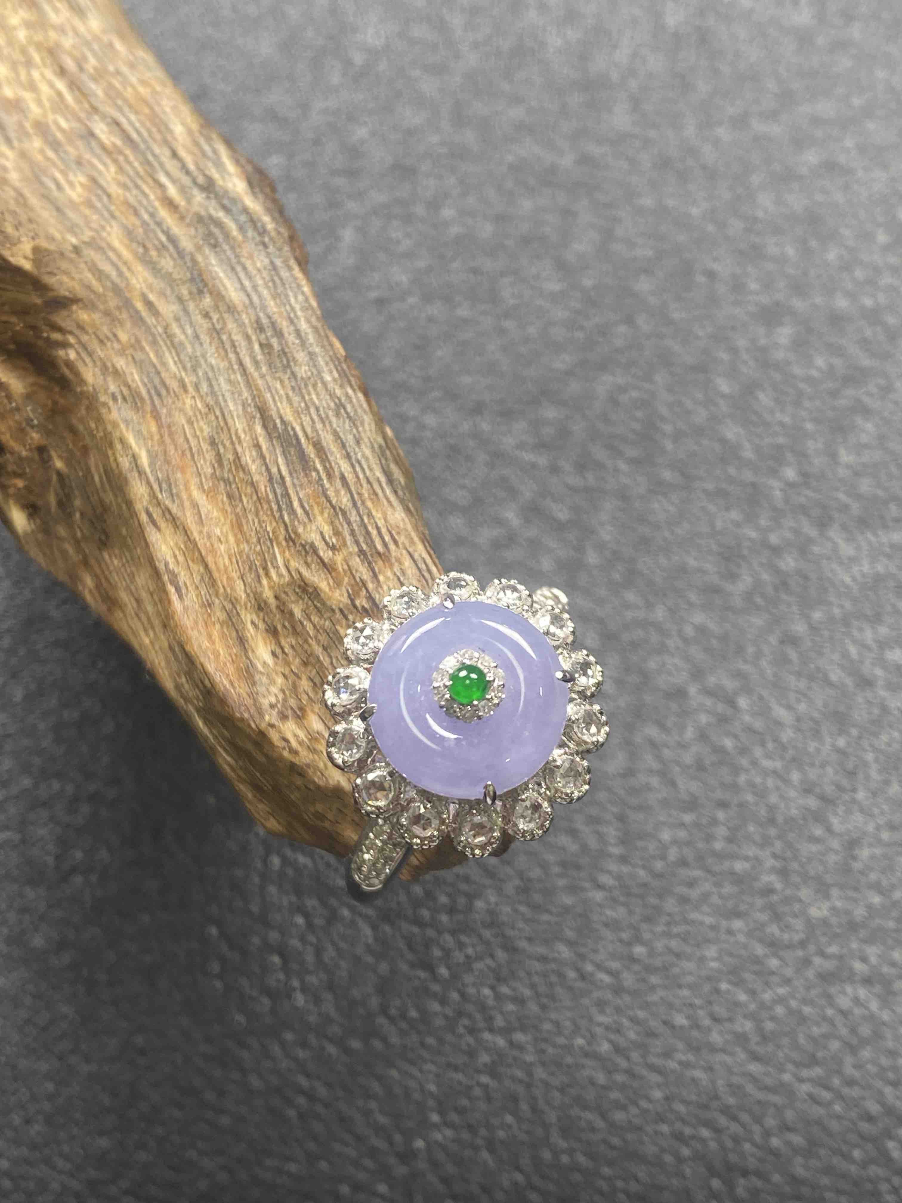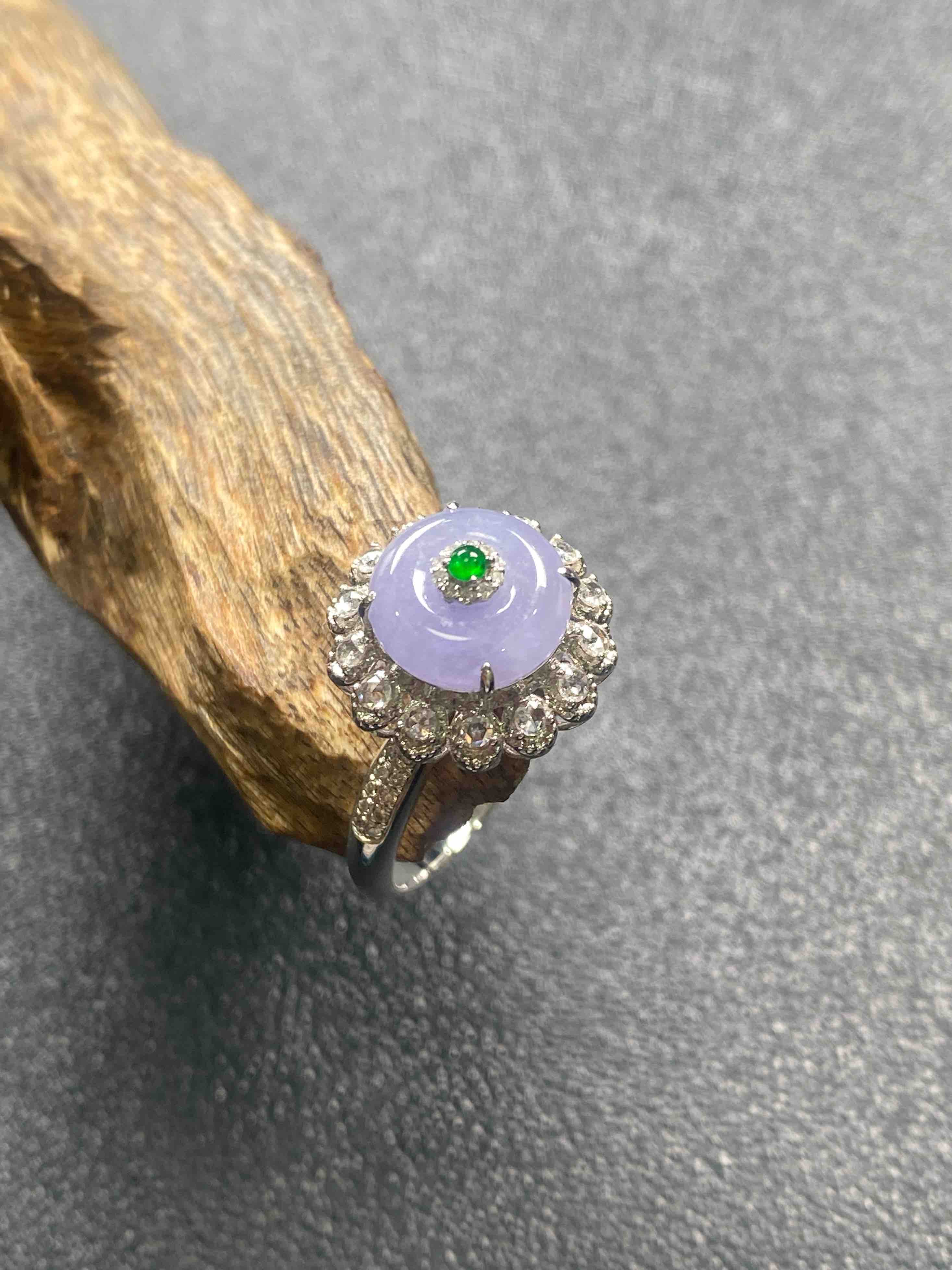 【FC0137】18K镶嵌翡翠冰紫平安扣戒指 色泽浓艳 玉质温润 款式精美 圈口13