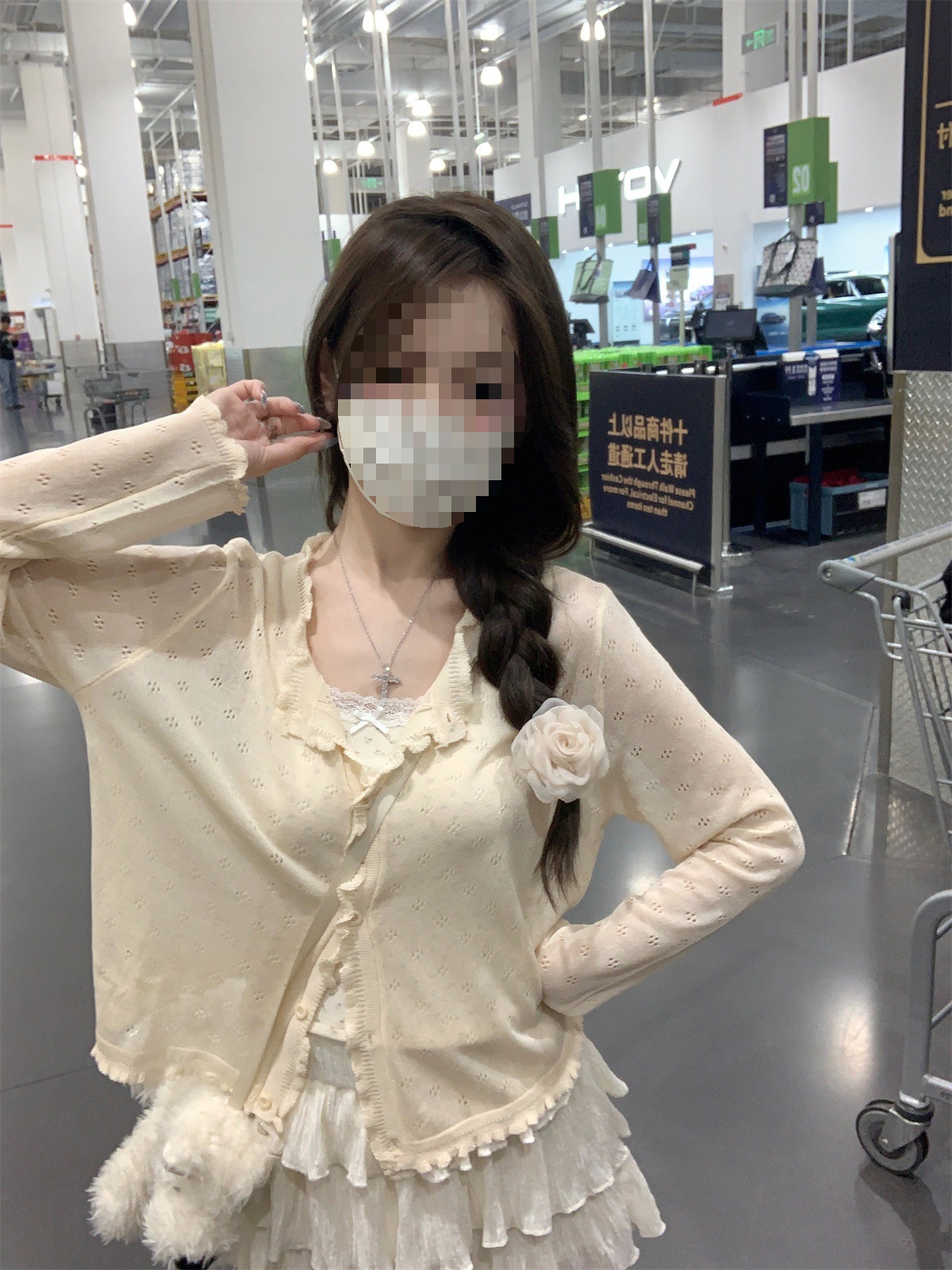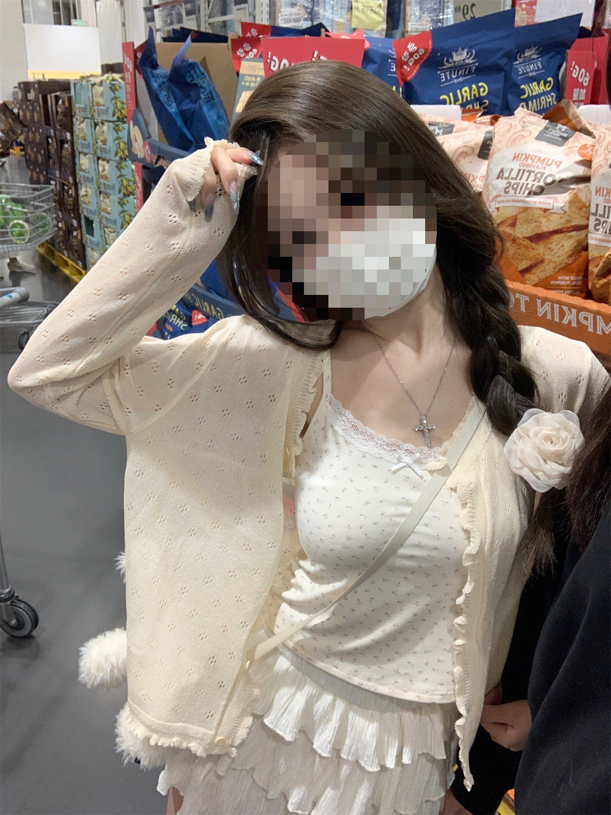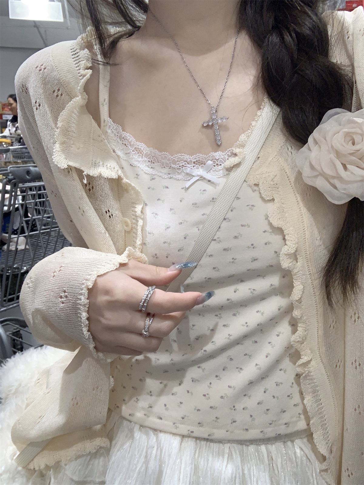 【温柔纯欲风❗️薄款镂空针织开衫】法式氛围感针织衫「软 fufu 的奶油开衫!温柔到骨子里」秒变纯欲氛围感美女,甜妹约会穿搭天花板,别致宽松短款长袖开衫上衣L