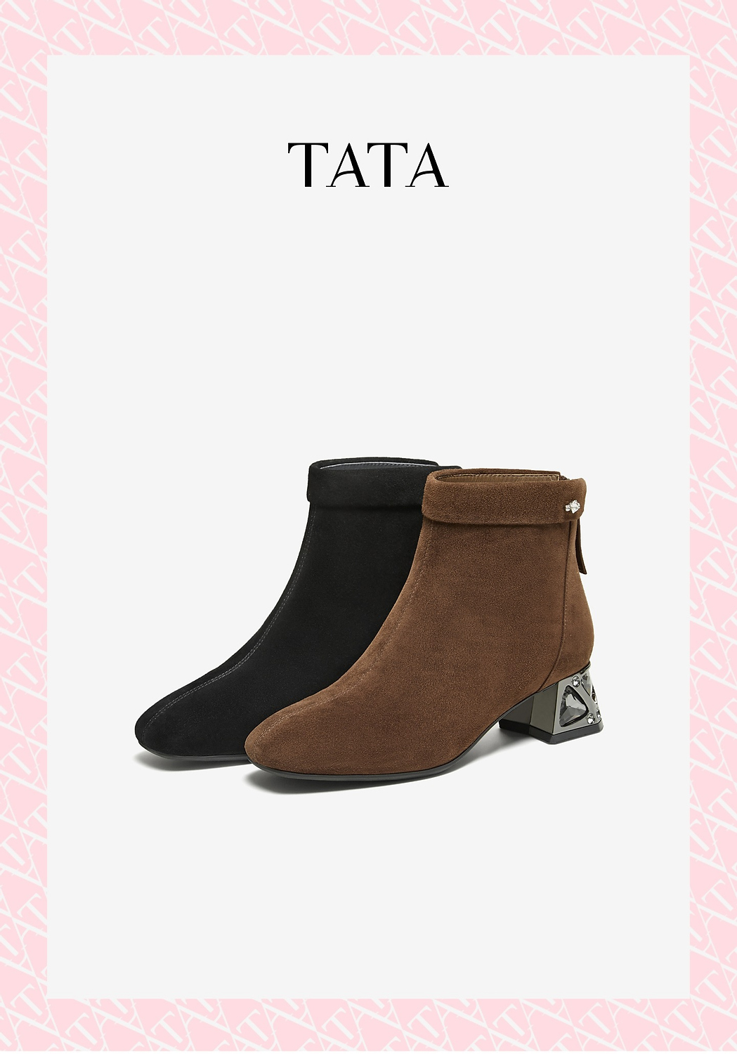 【云粉节】BF楼TATA他她靴子女鞋2025秋冬羊皮休闲百搭增高粗跟弹力短靴XJQ02DD5吊牌价1299