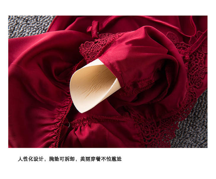 带胸垫睡衣女春秋薄款夏季冰丝性感四件套家居服吊带睡裙睡袍套装