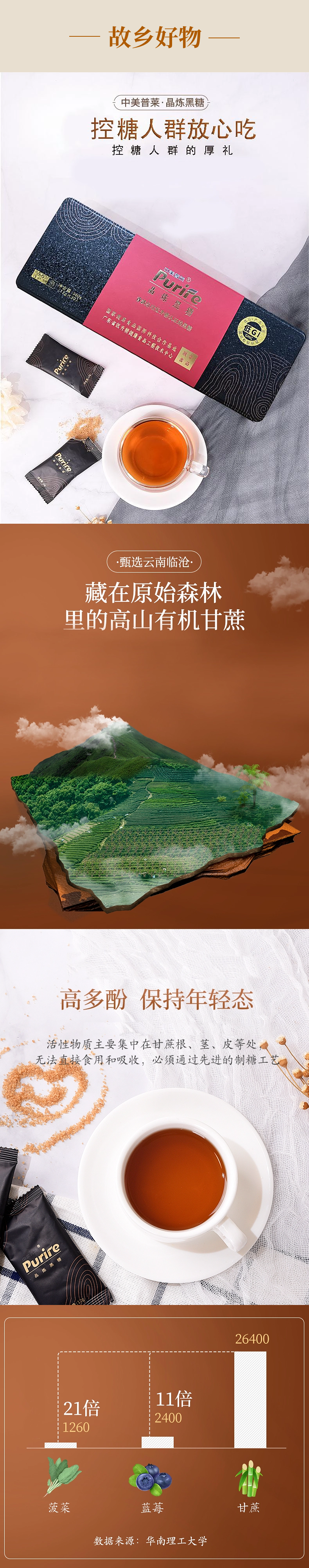 故乡好物 | 低GI晶炼工艺食用黑糖--礼盒装低钾低钠营养低升黑糖