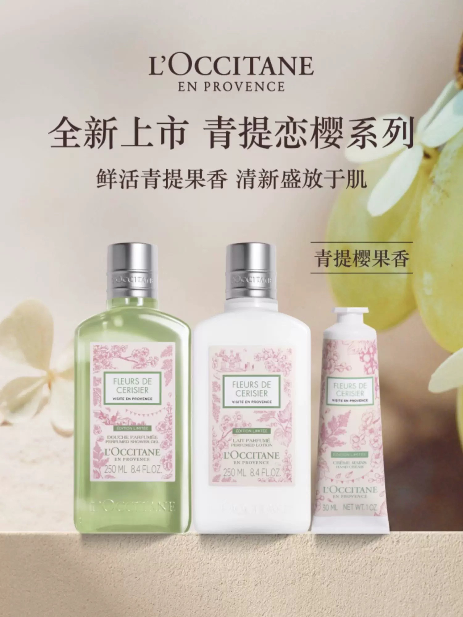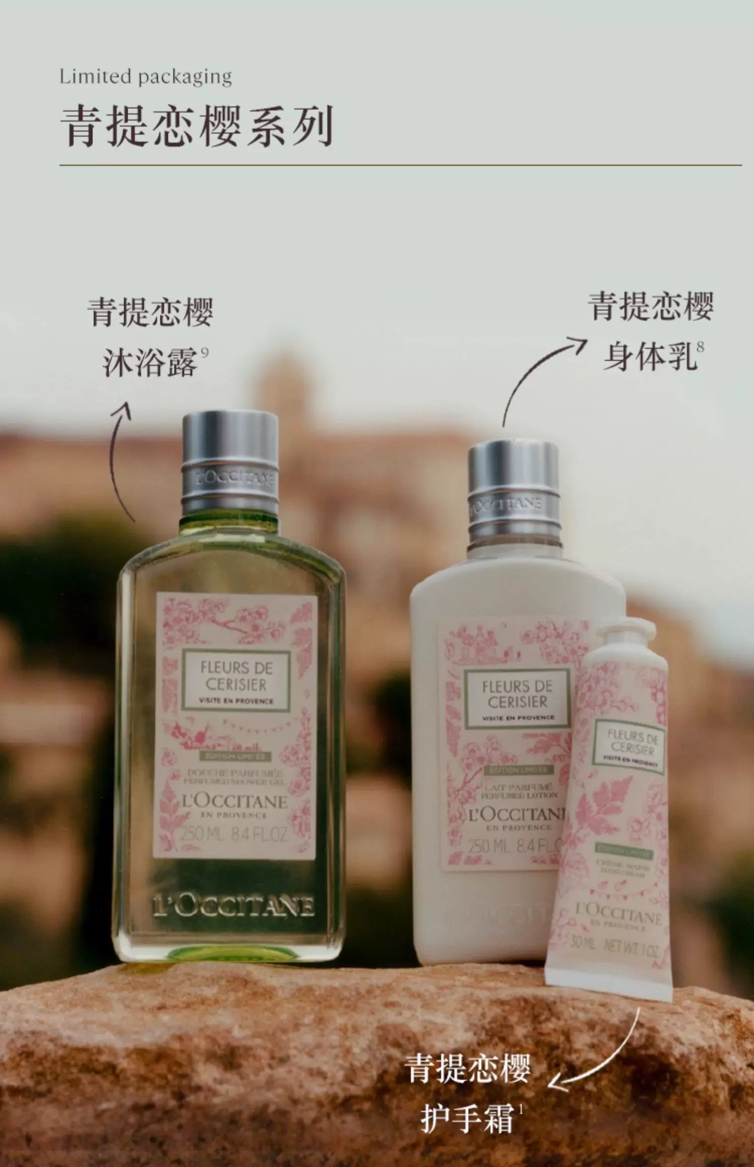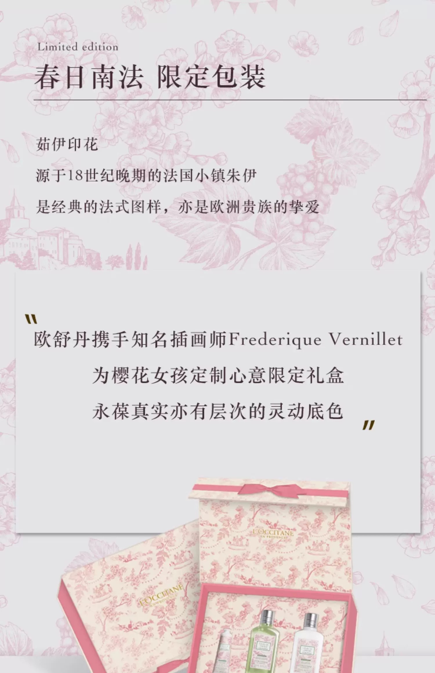 秀智赵露思同款!国柜欧舒丹青提恋樱三件套 沐浴露250ml +身体乳250ml+护手霜30ml 礼盒装