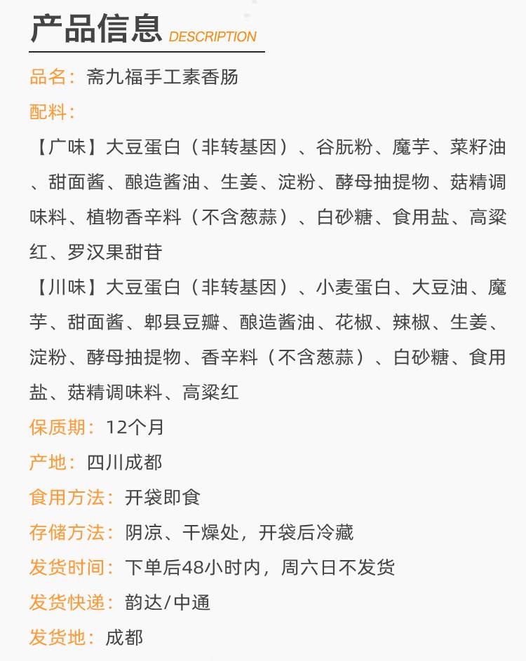 斋九福 素香肠植物肉 川味广味 118g*6袋
