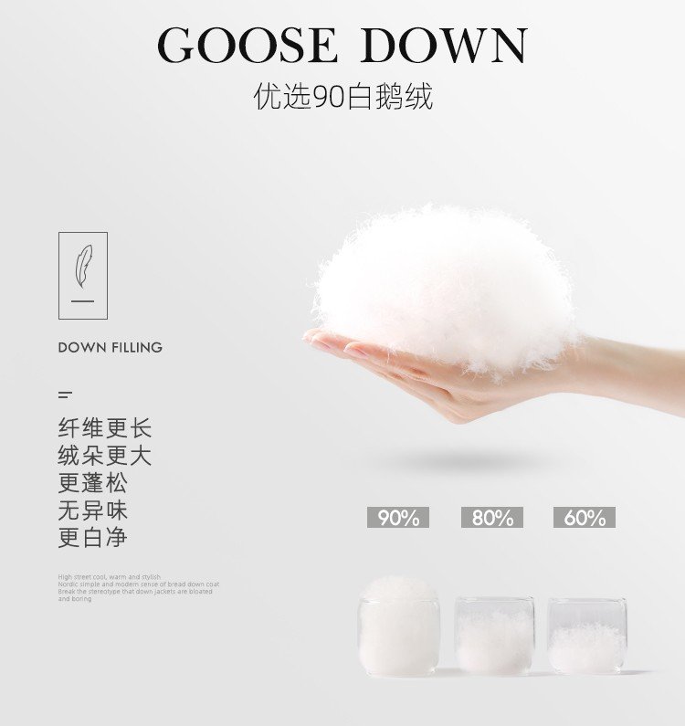 东北大白鹅生长环境十分寒冷,因此该鹅种的绒朵更大,品质佳,弹性足,保暖性强,具有更好的吸湿性、透汗性,比较干爽,且蓬松度更髙,每一朵都经过33道工序的深层清洁,高于国标要求,专业除菌消毒工序,达国际RDS认证 更蓬松,更轻柔,也更保暖。