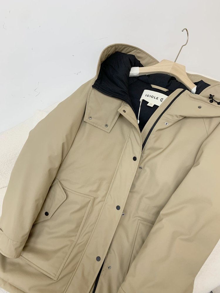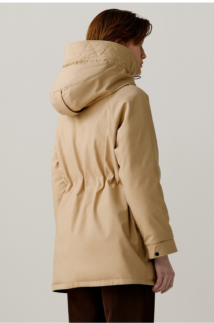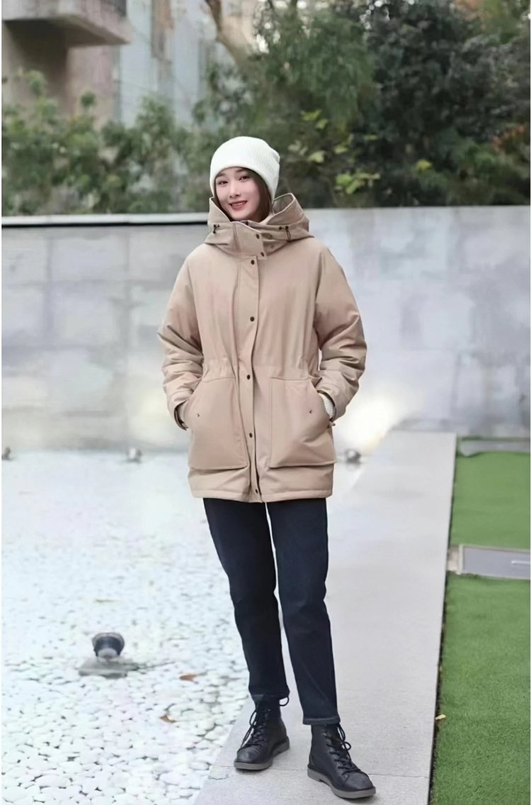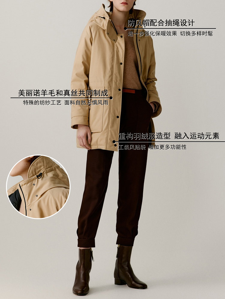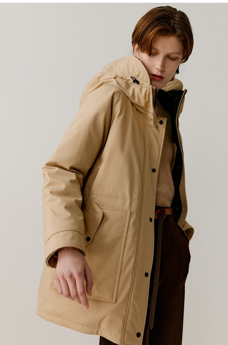 经典工装风派克时装羽绒服 长白山松花江畔90白鹅绒 内腰带抽绳 显瘦百搭 羊毛桑蚕丝混纺面料 宽松H版型不挑身型 派克服收腰连帽羽绒服
