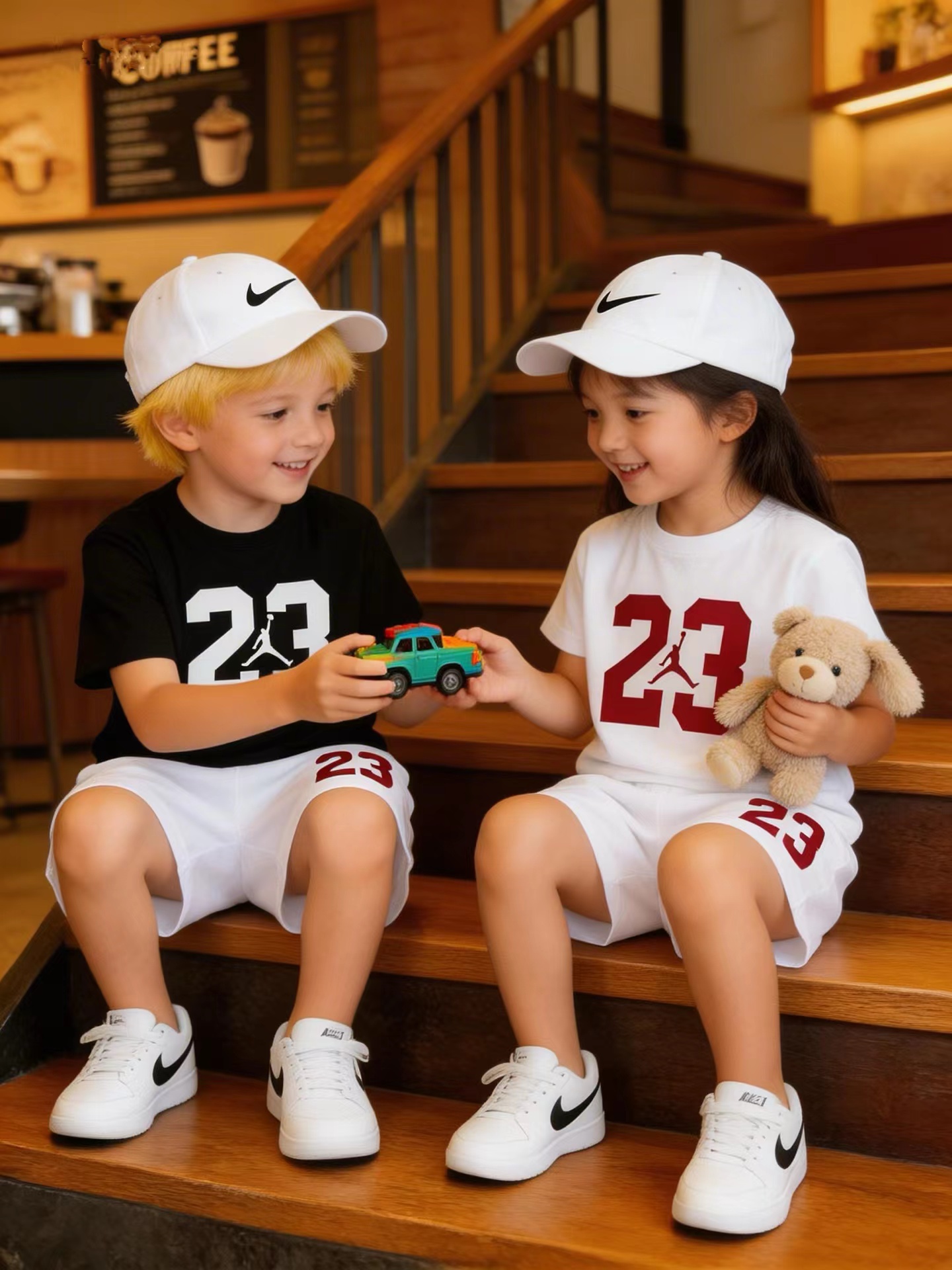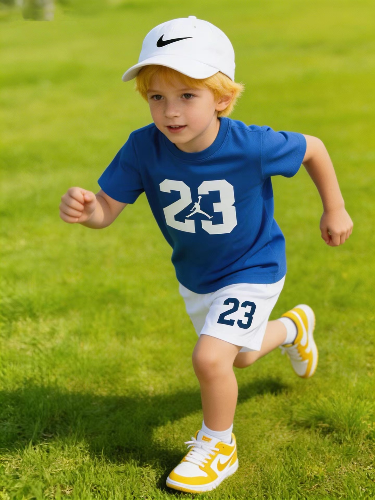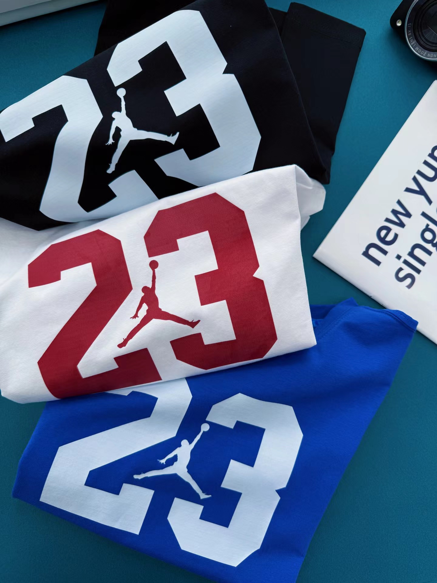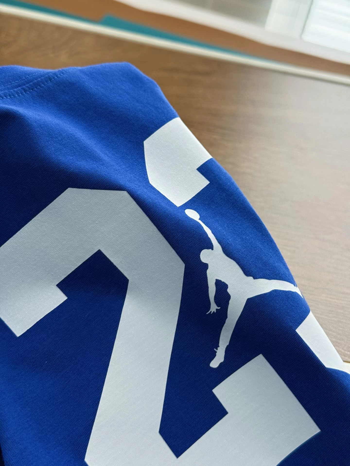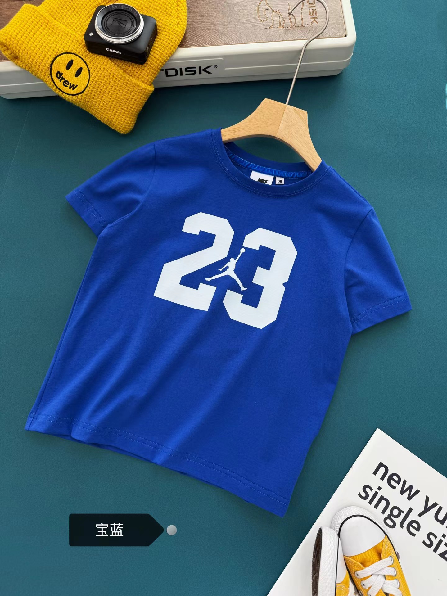 【夏日刚需】儿童23号圆领短袖|凉感棉感+运动风拉满100纯棉冰凉手感,经dian23号飞人印花,男女宝通吃的百搭wang炸款! 面料党狂喜:精选100精梳棉,上手自带凉感,透气不闷汗,夏天疯玩也不粘身,软糯亲肤不磨宝宝娇嫩肌肤。颜值即正义:经dian23号+飞人剪影印花,运动风拉满,配短裤、运动裤都超吸睛,男宝女宝都能穿出潮娃感。细节控安心:圆领贴合颈部不卡脸,走线工整耐造,机洗不变形,日常遛娃、幼儿园、运动课都能穿,实穿度拉满