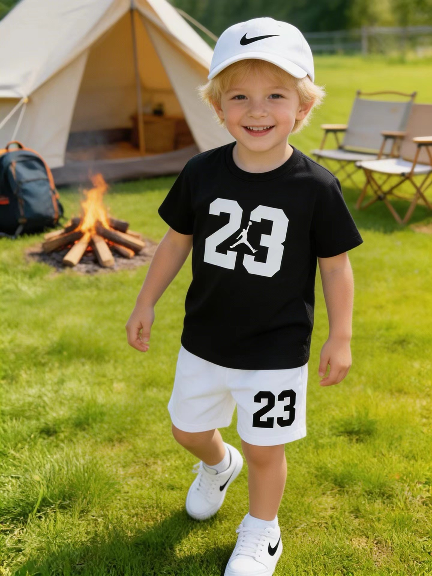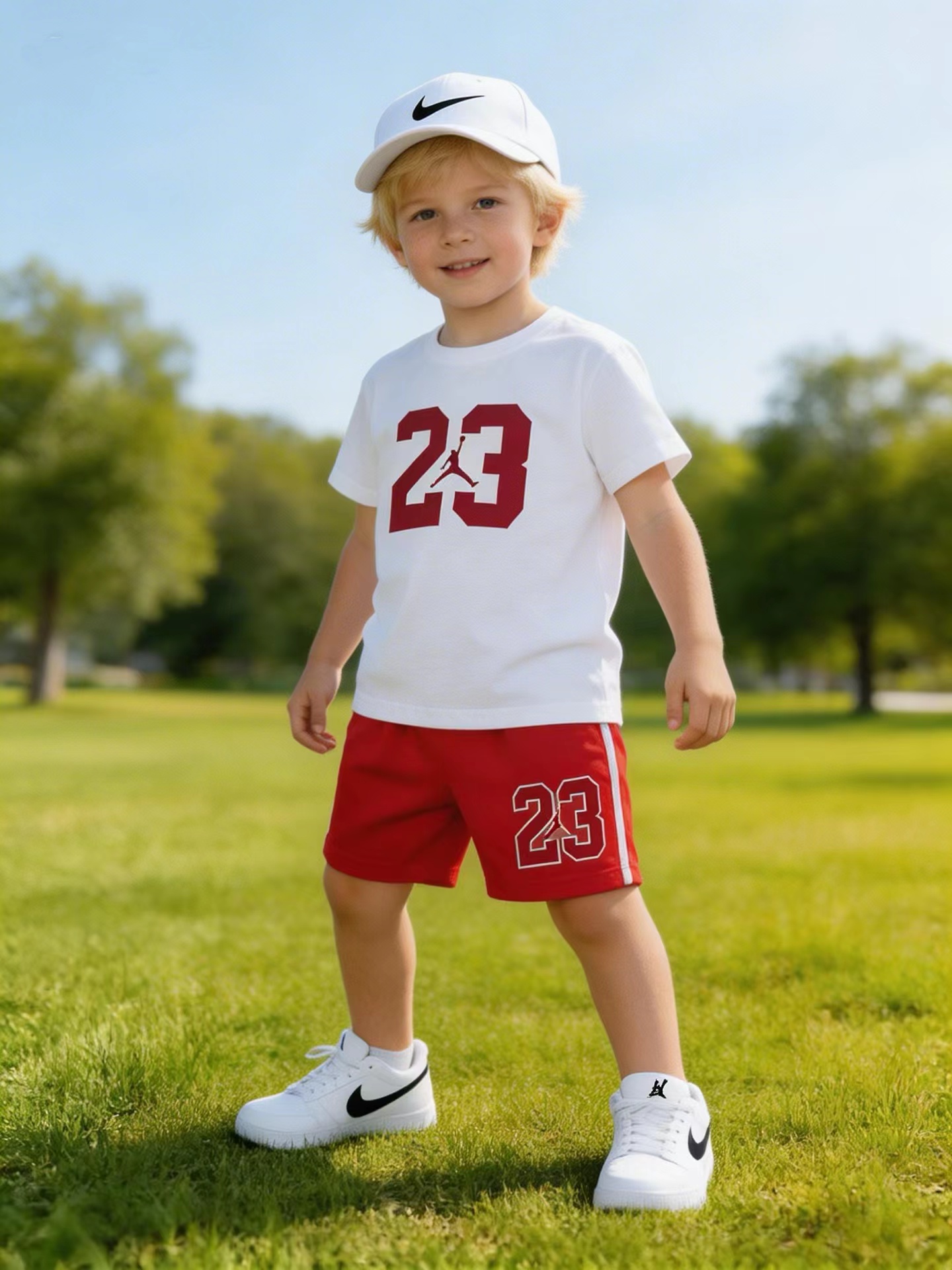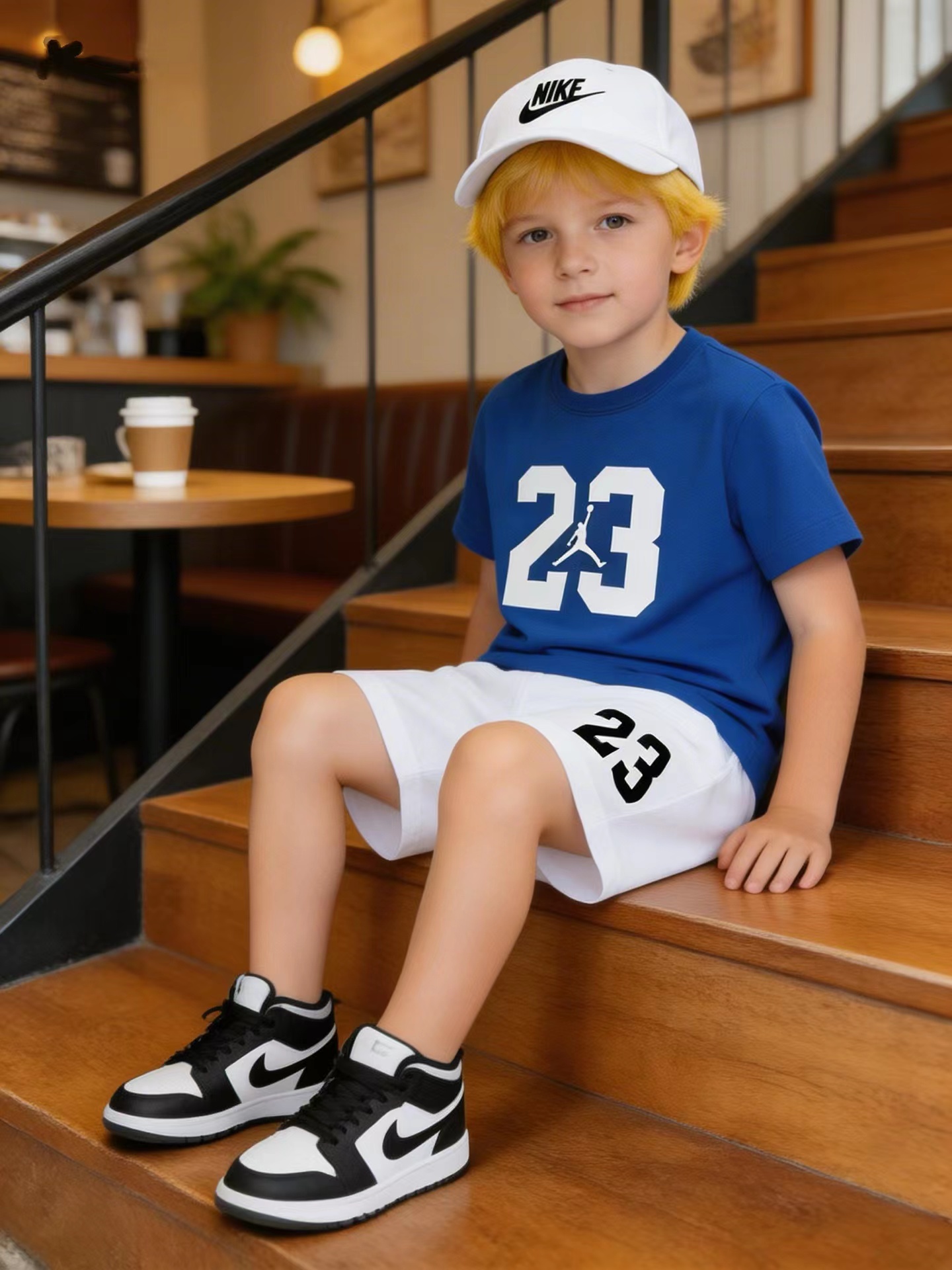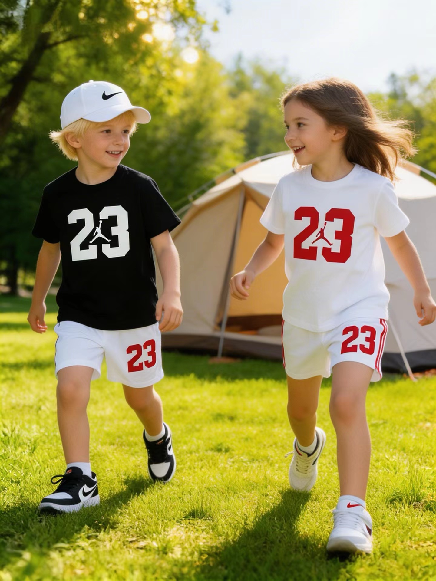 【夏日刚需】儿童23号圆领短袖|凉感棉感+运动风拉满100纯棉冰凉手感,经dian23号飞人印花,男女宝通吃的百搭wang炸款! 面料党狂喜:精选100精梳棉,上手自带凉感,透气不闷汗,夏天疯玩也不粘身,软糯亲肤不磨宝宝娇嫩肌肤。颜值即正义:经dian23号+飞人剪影印花,运动风拉满,配短裤、运动裤都超吸睛,男宝女宝都能穿出潮娃感。细节控安心:圆领贴合颈部不卡脸,走线工整耐造,机洗不变形,日常遛娃、幼儿园、运动课都能穿,实穿度拉满
