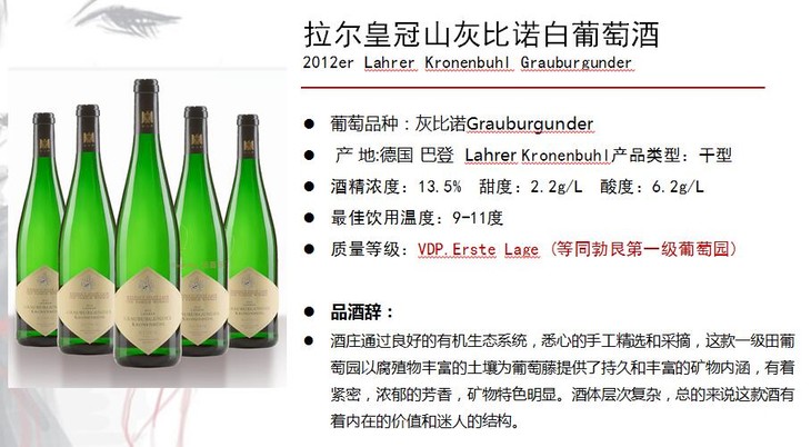 拉尔皇冠山灰比诺白葡萄酒