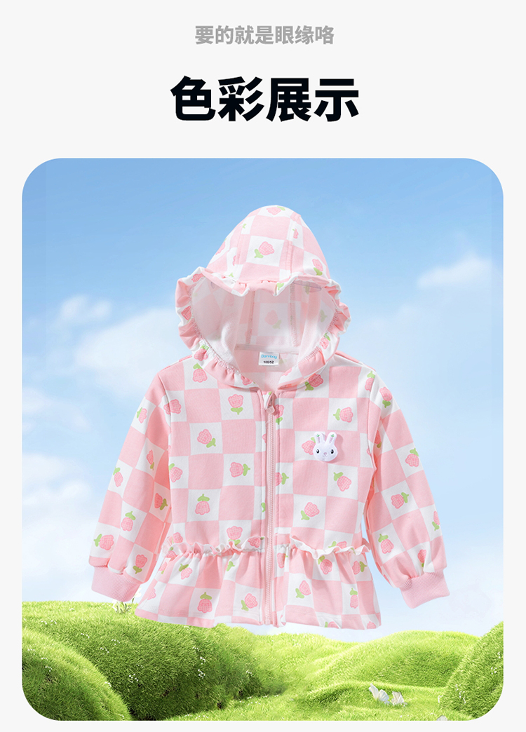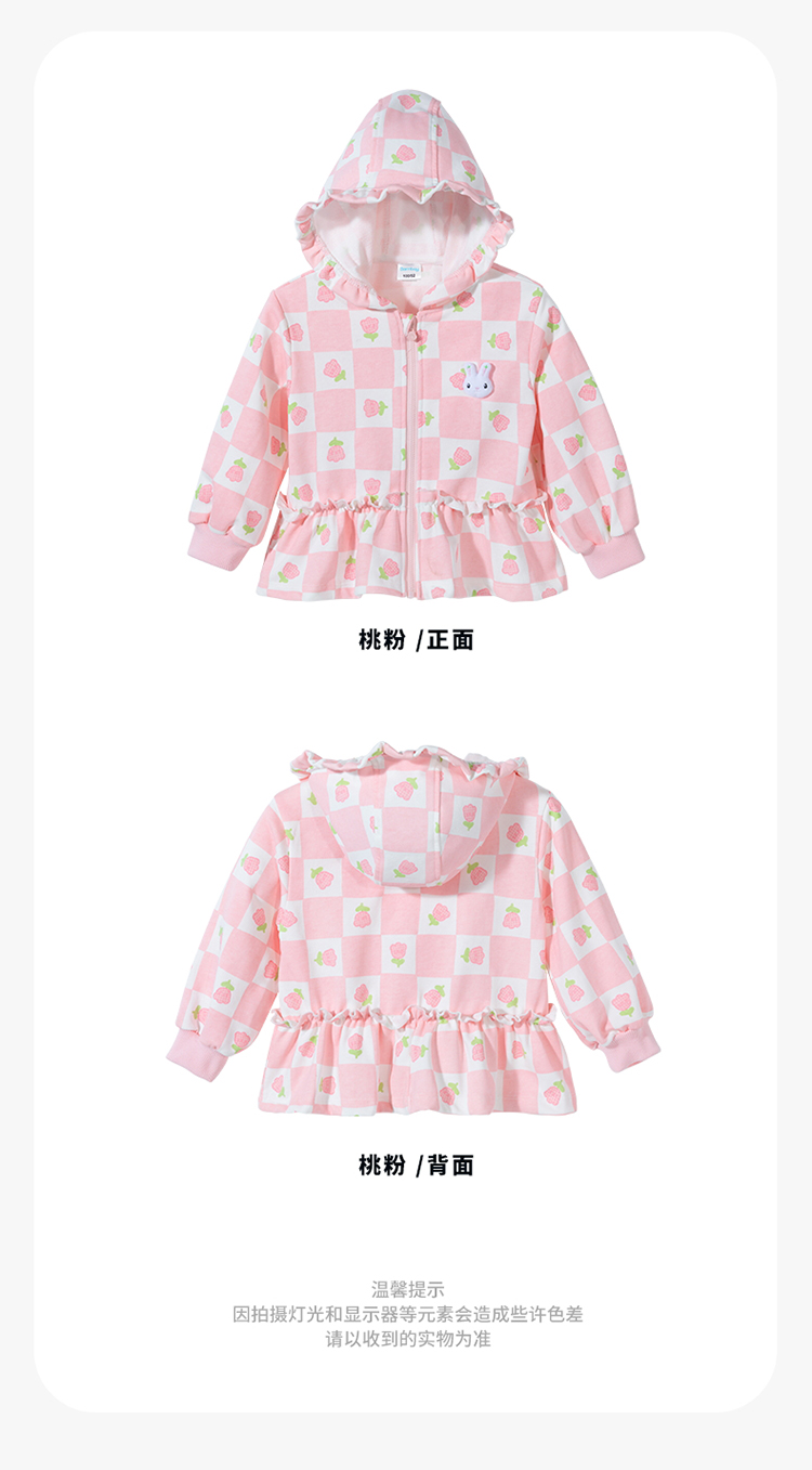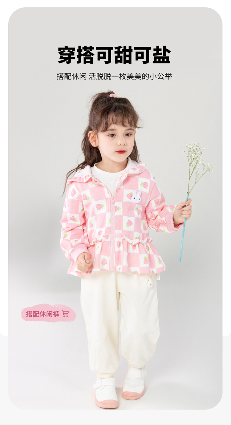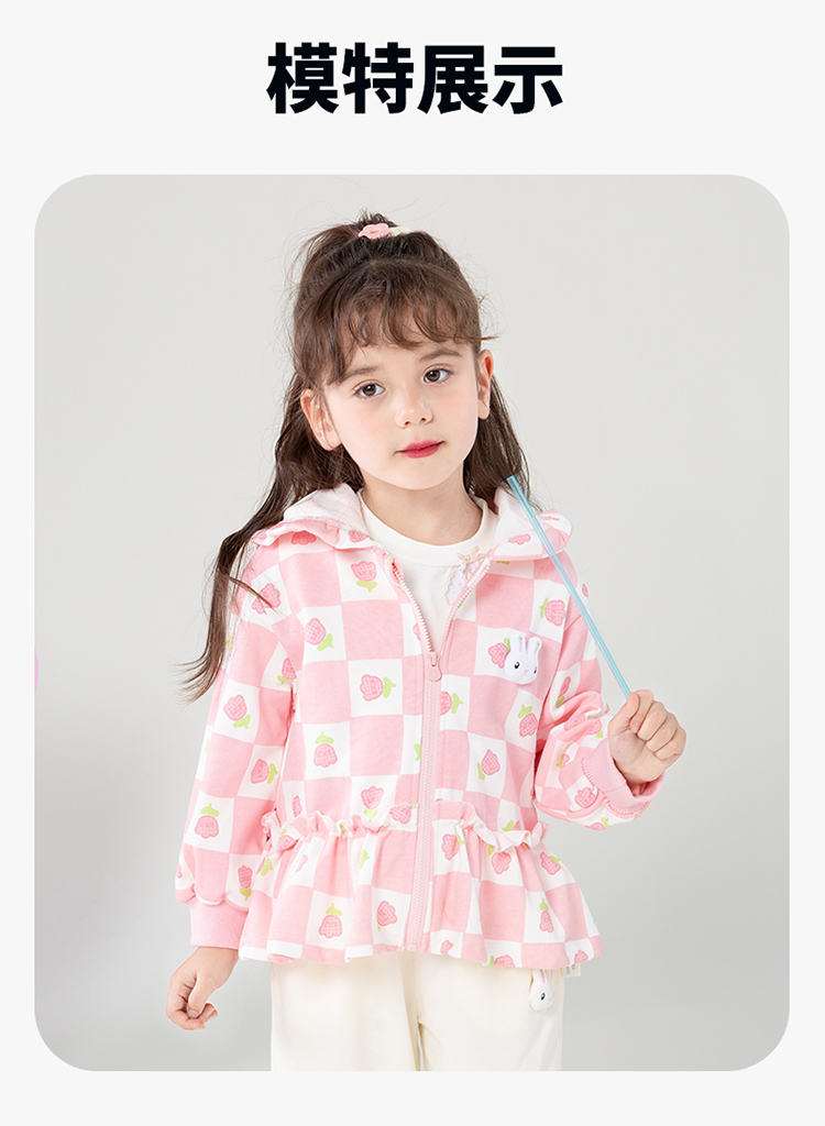 贝贝怡儿童外套女童拉链百搭2024新款春装休闲连帽外衣外套