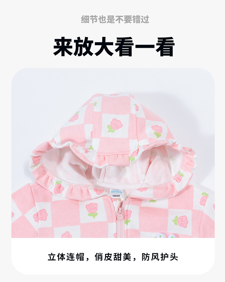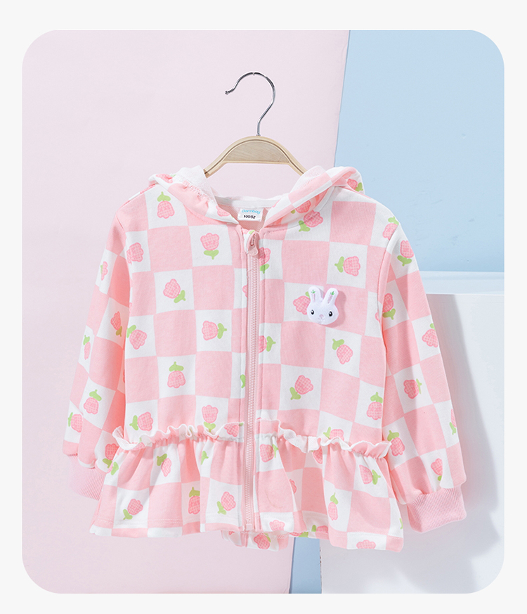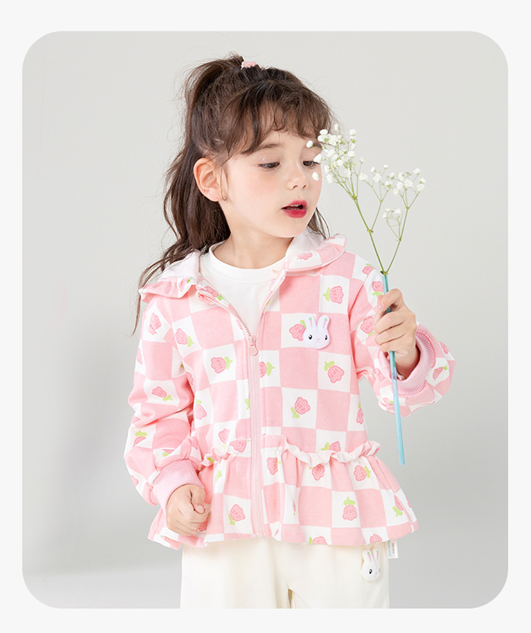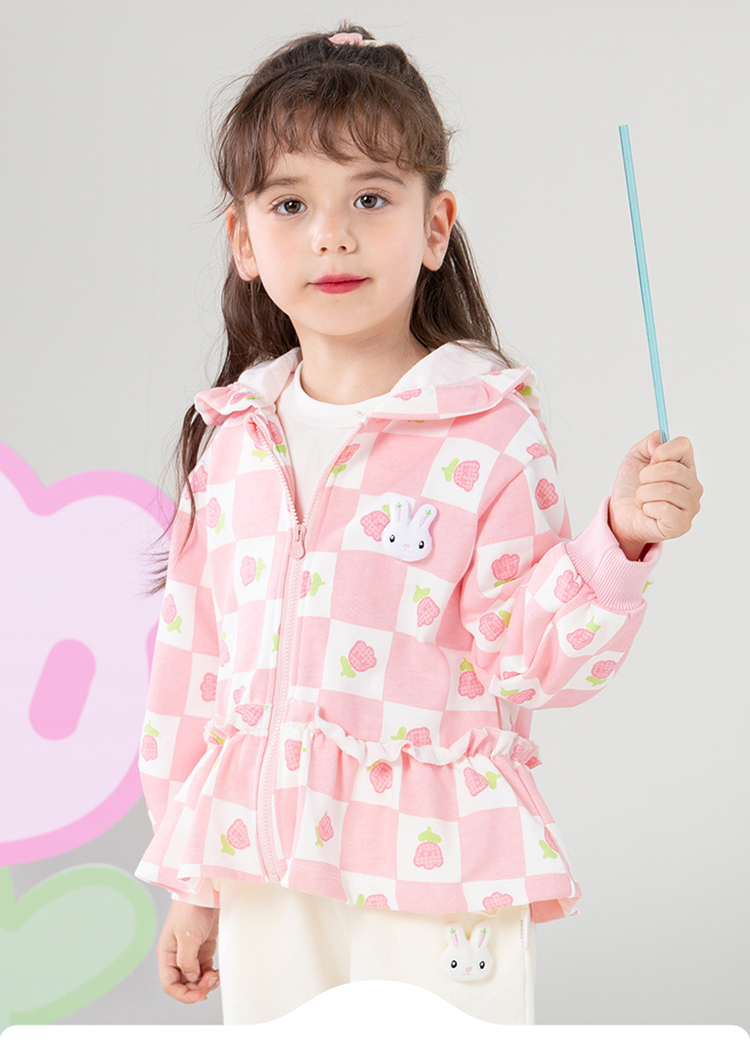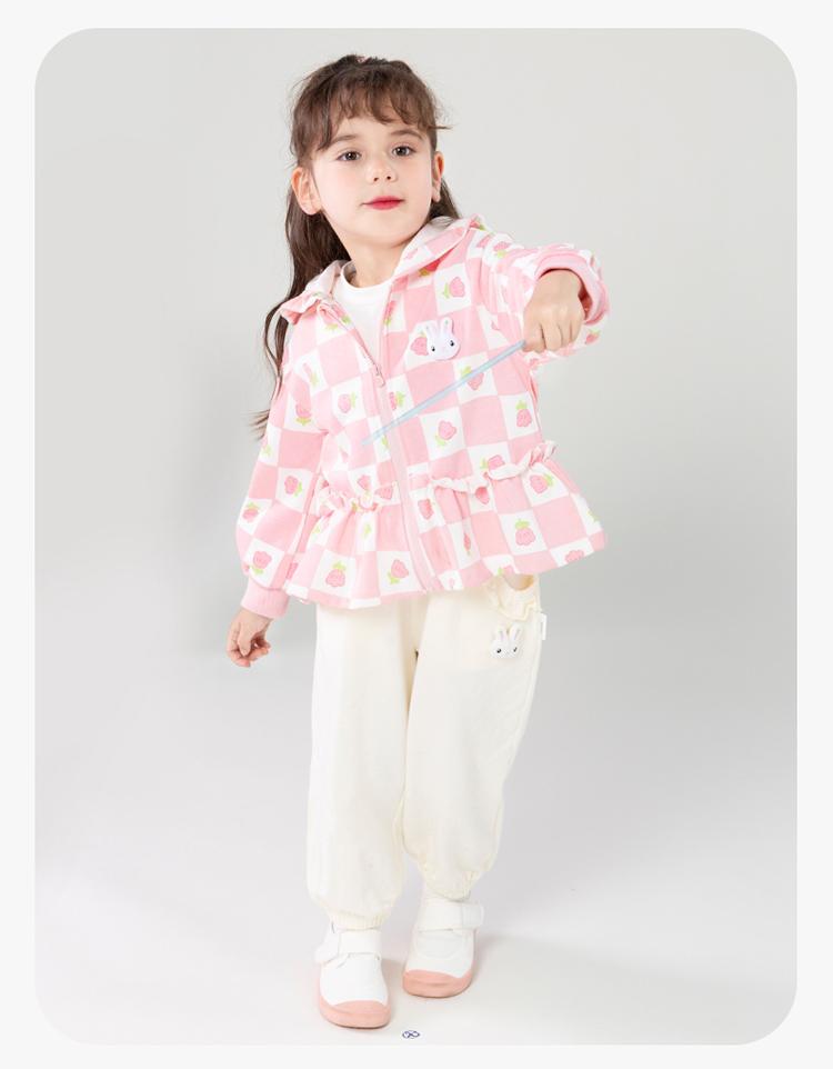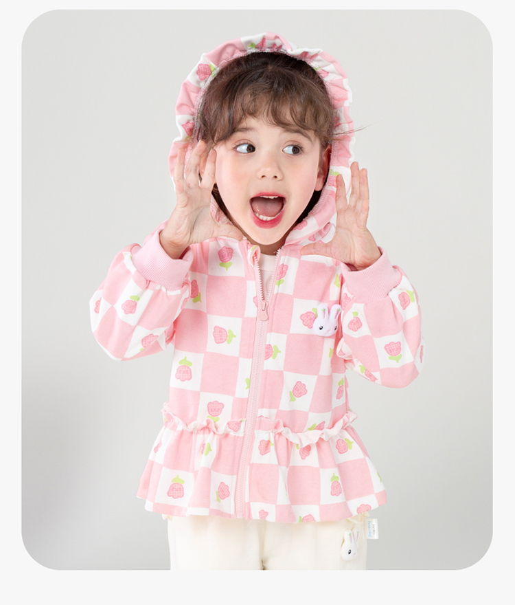 贝贝怡儿童外套女童拉链百搭2024新款春装休闲连帽外衣外套