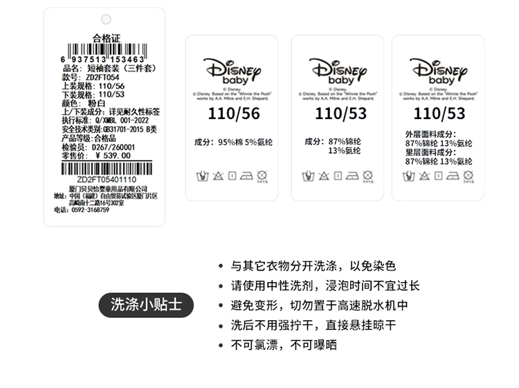 迪士尼夏季卡通女童短袖套装(三件套)ZD2FT054
