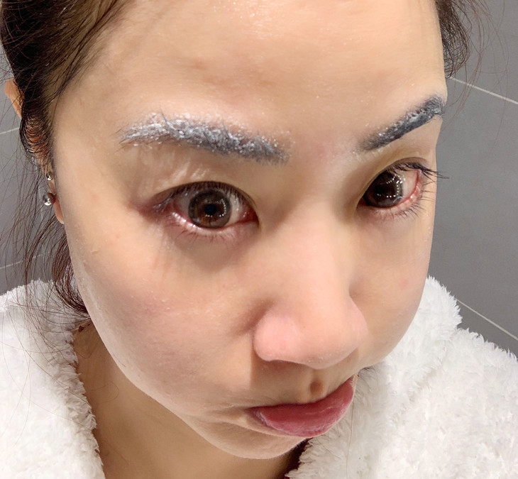 但我个人觉得,涂完是需要洗脸的,可能也是我厚涂的原因,一碰冷水像猪油蒙脸上。我开始也想硬撑下只用清水,结果眉毛都糊住打结了。但敏感肌不用担心,可以用修丽可的慕斯洁面,不会刺激,也不会伤害皮肤。