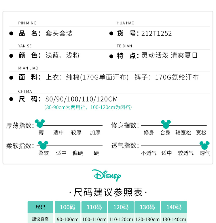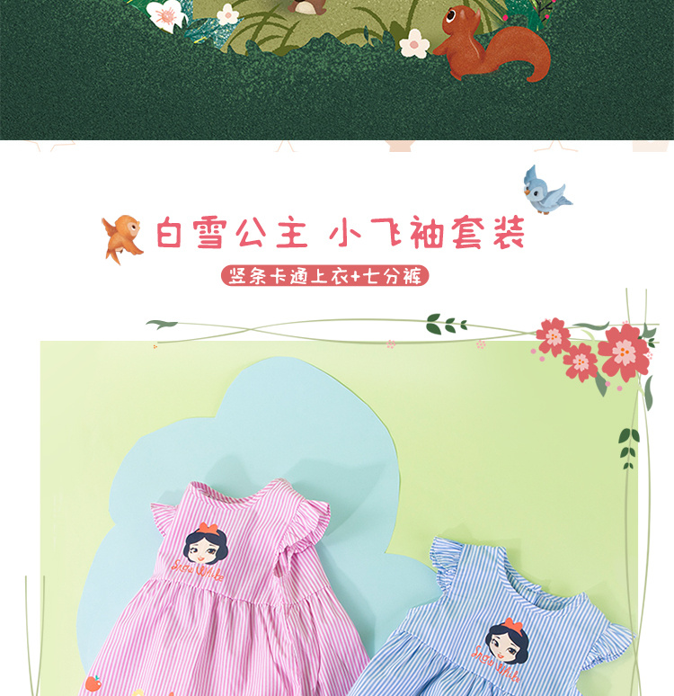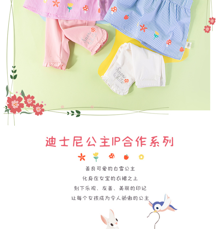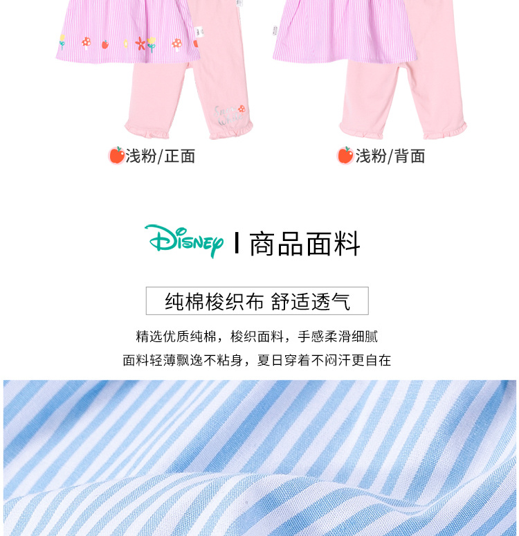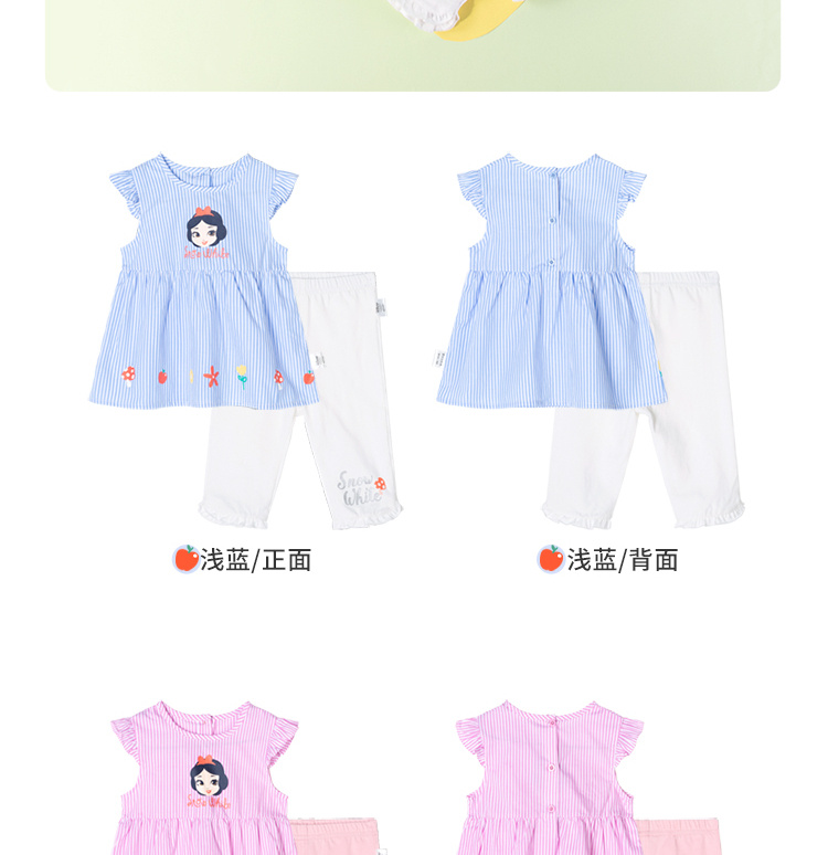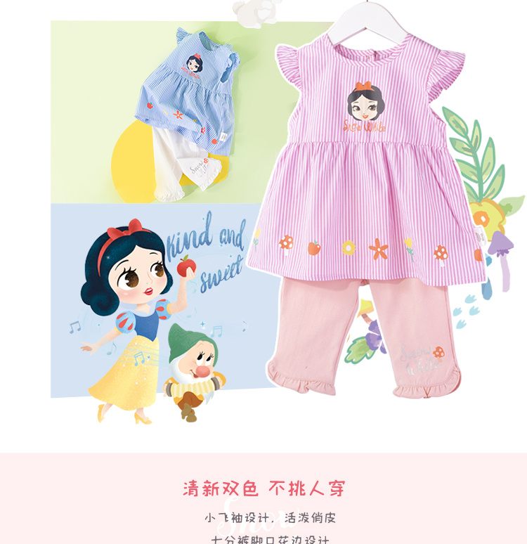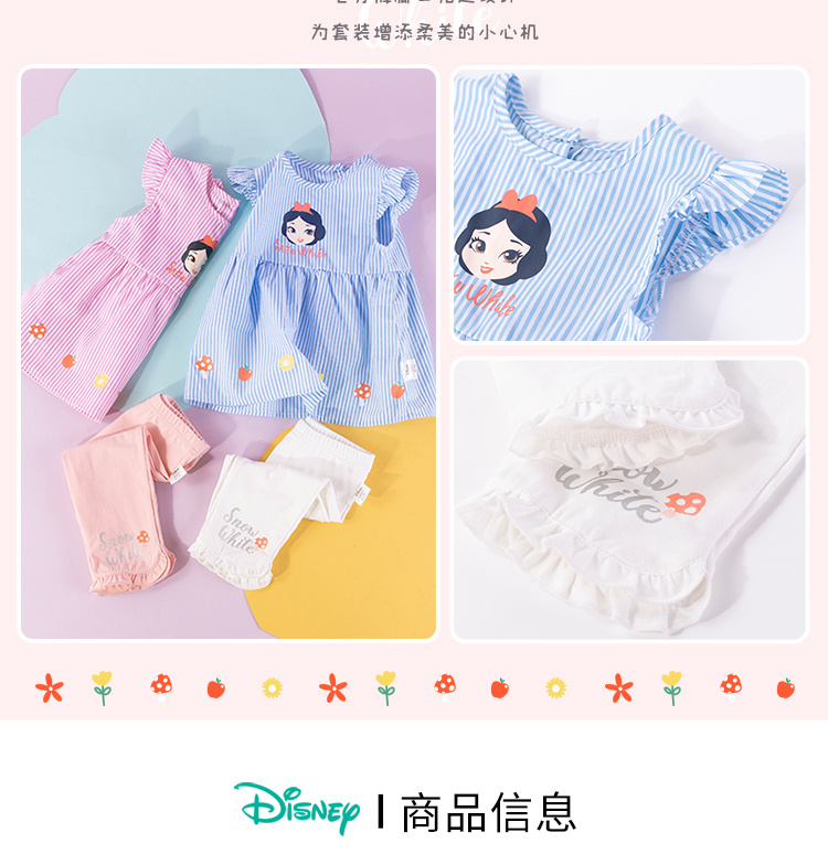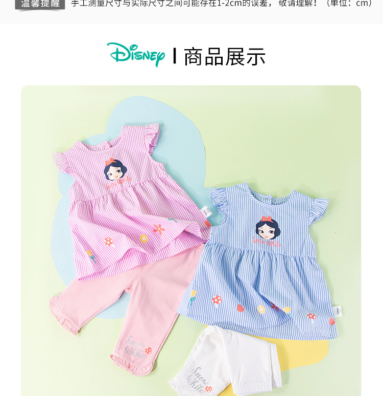 迪士尼女童两件套时髦短袖公主衫七分裤两件套套装