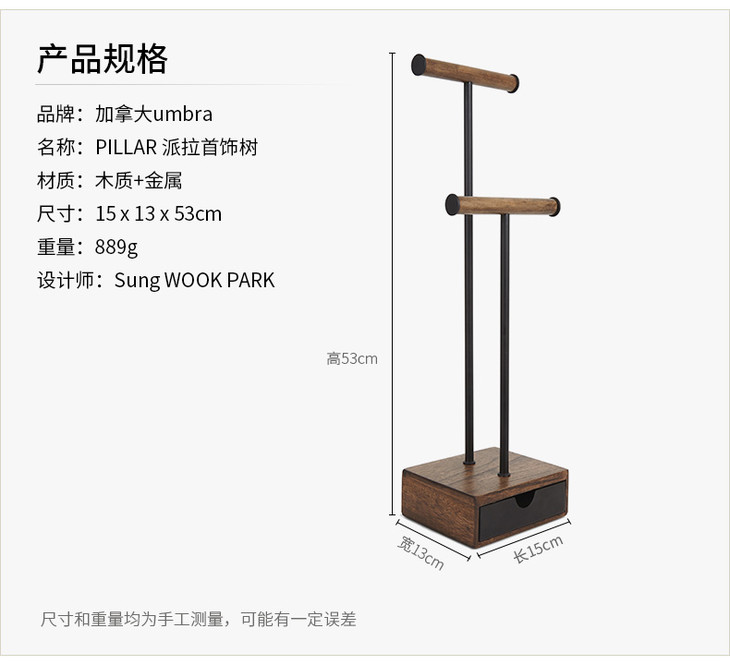 umbra实木首饰收纳架 复古创意项链展示架子 首饰树首饰珠宝盒
