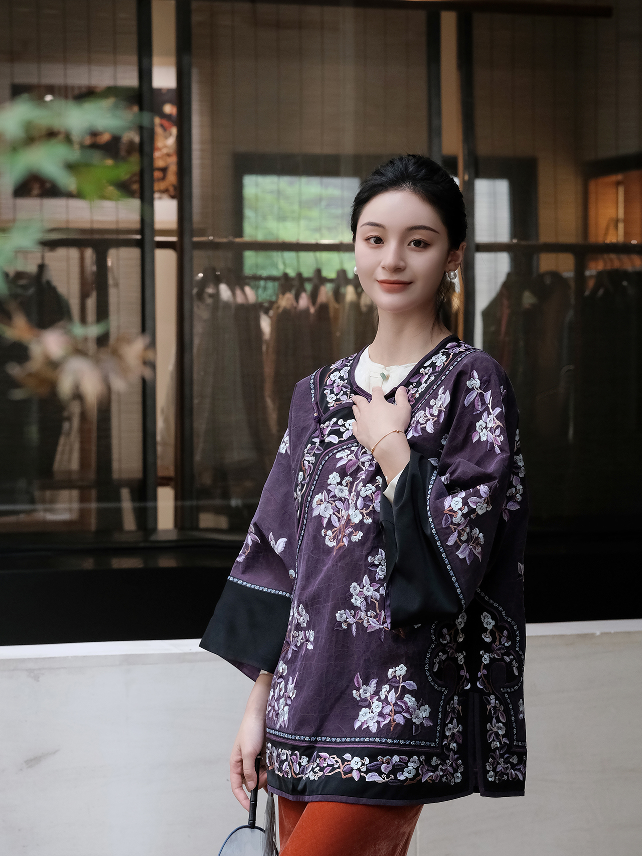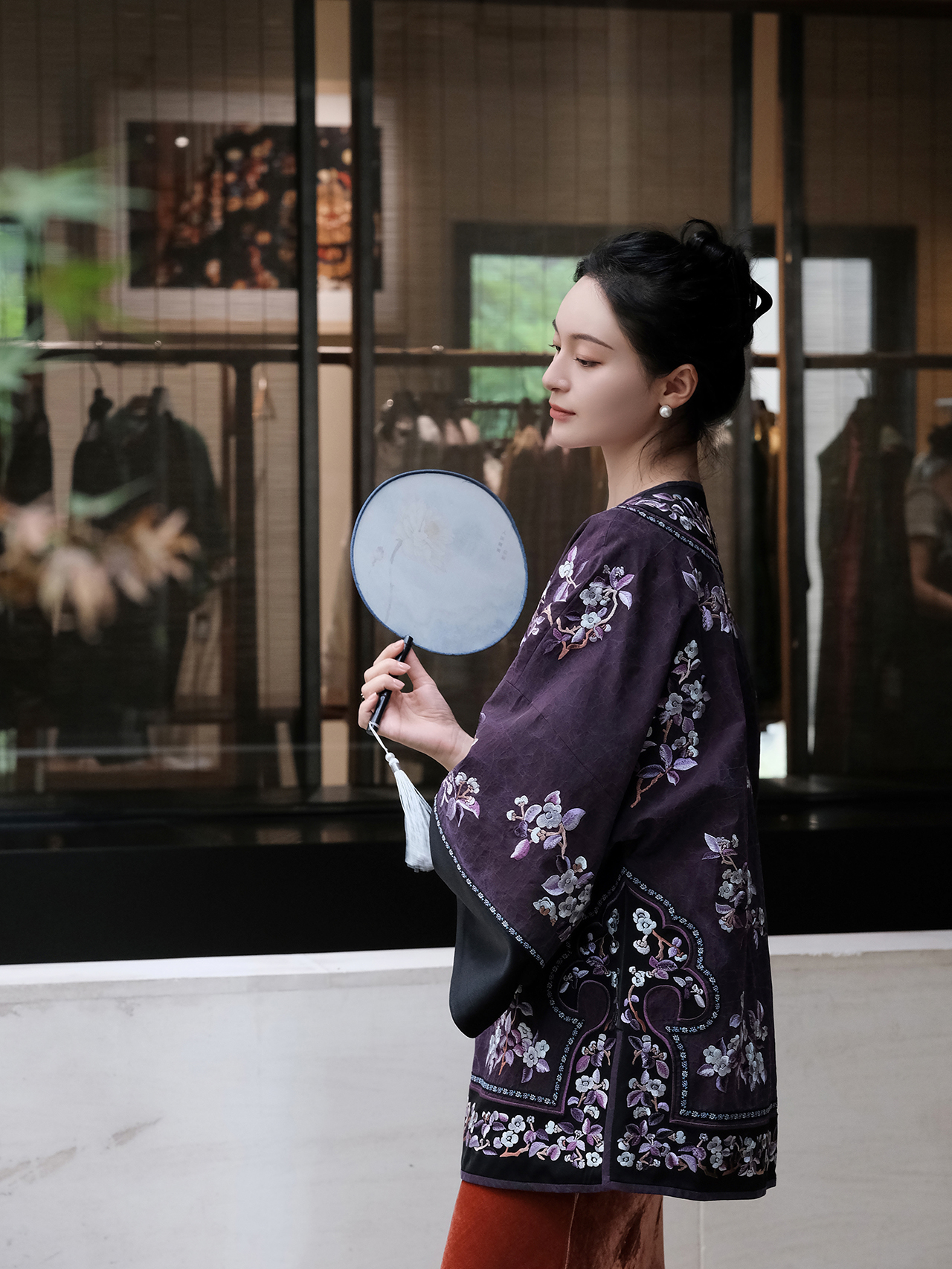 盛唐牡丹| 高货-大宋玉兰重工刺绣中式太太服-紫黑