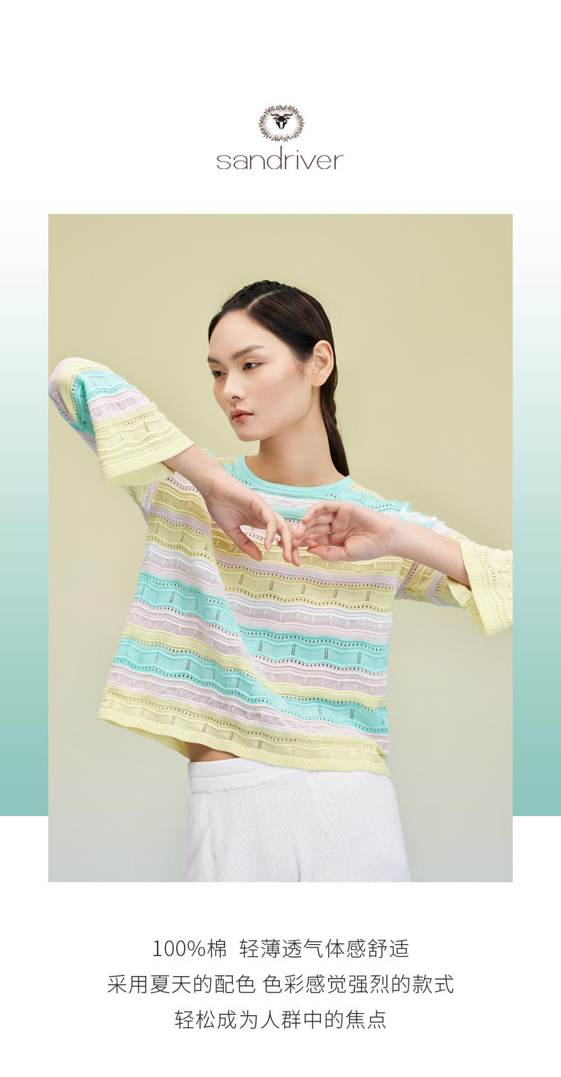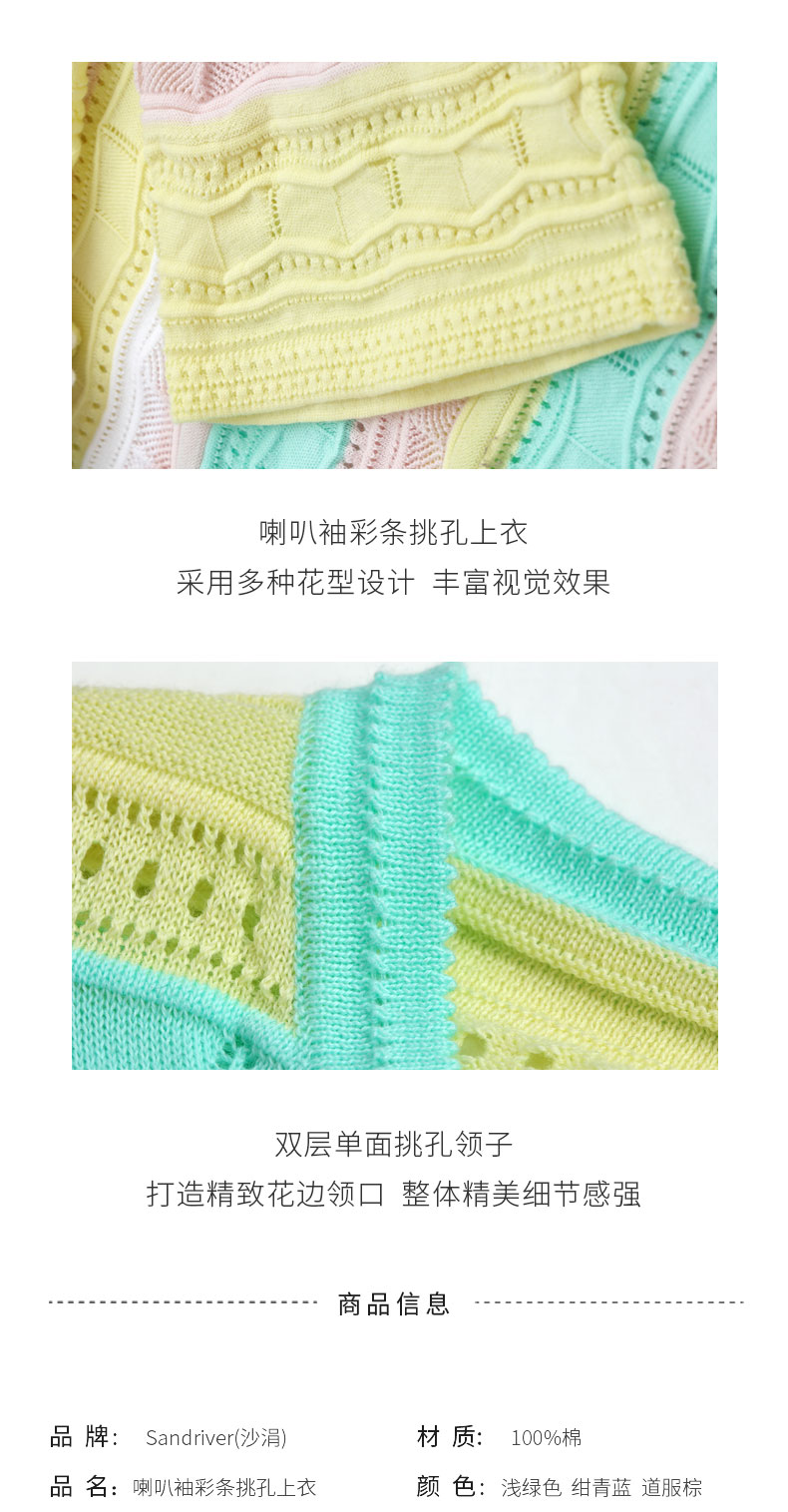 喇叭袖彩条挑孔上衣 SJS95W040K