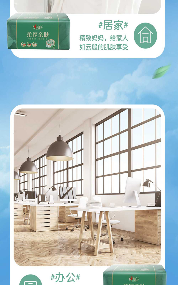 DT100(箱装)柔厚亲肤三层100抽18包塑装纸面