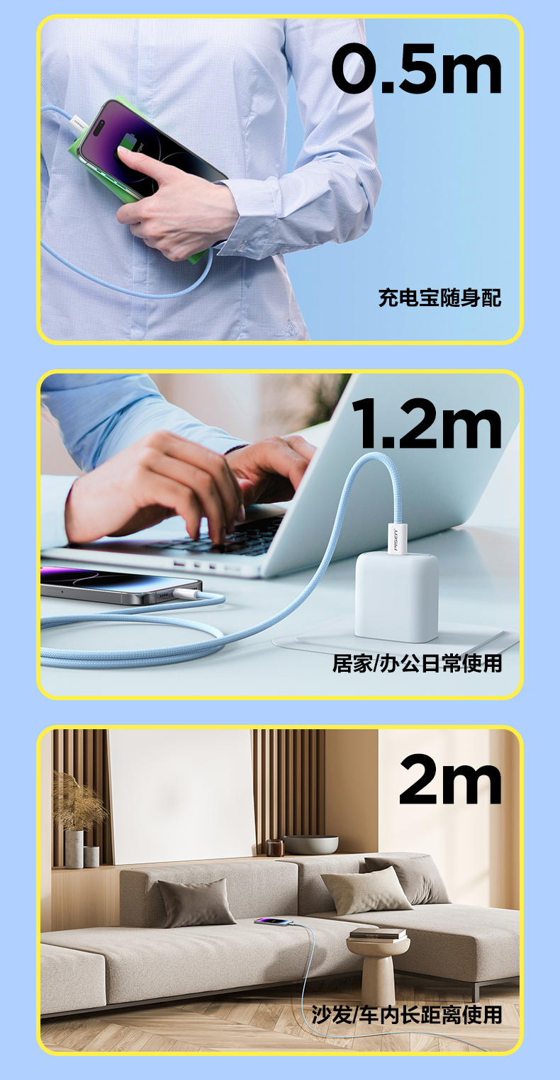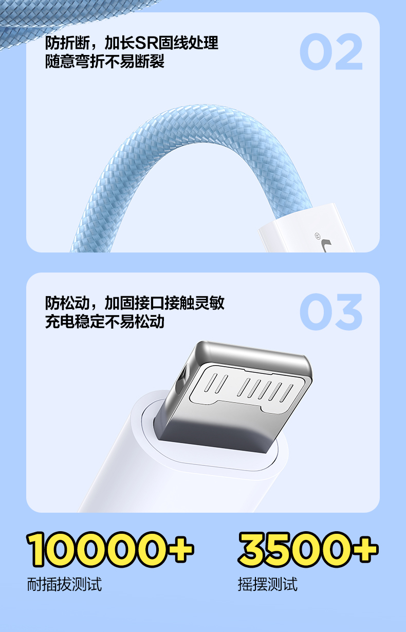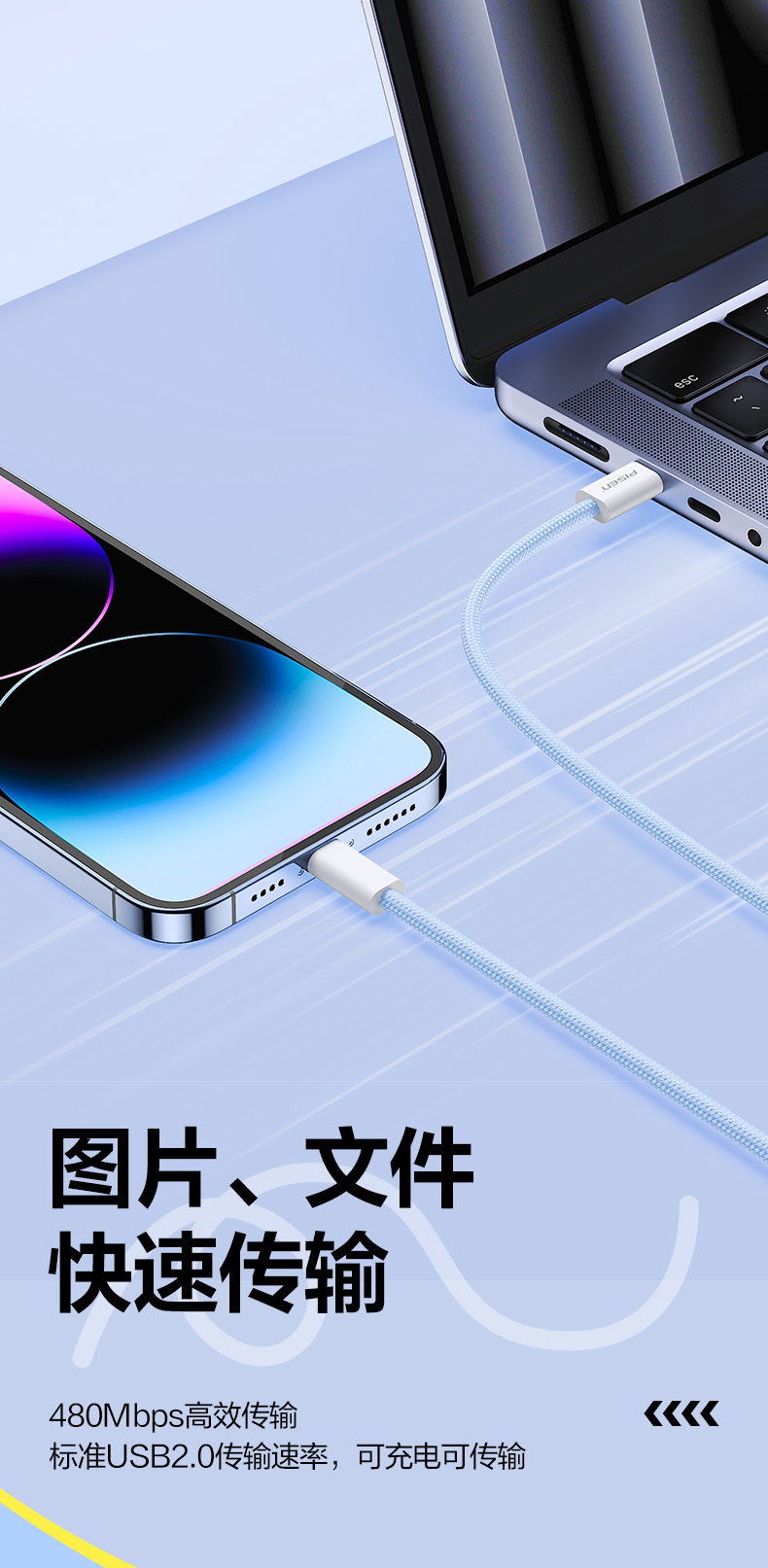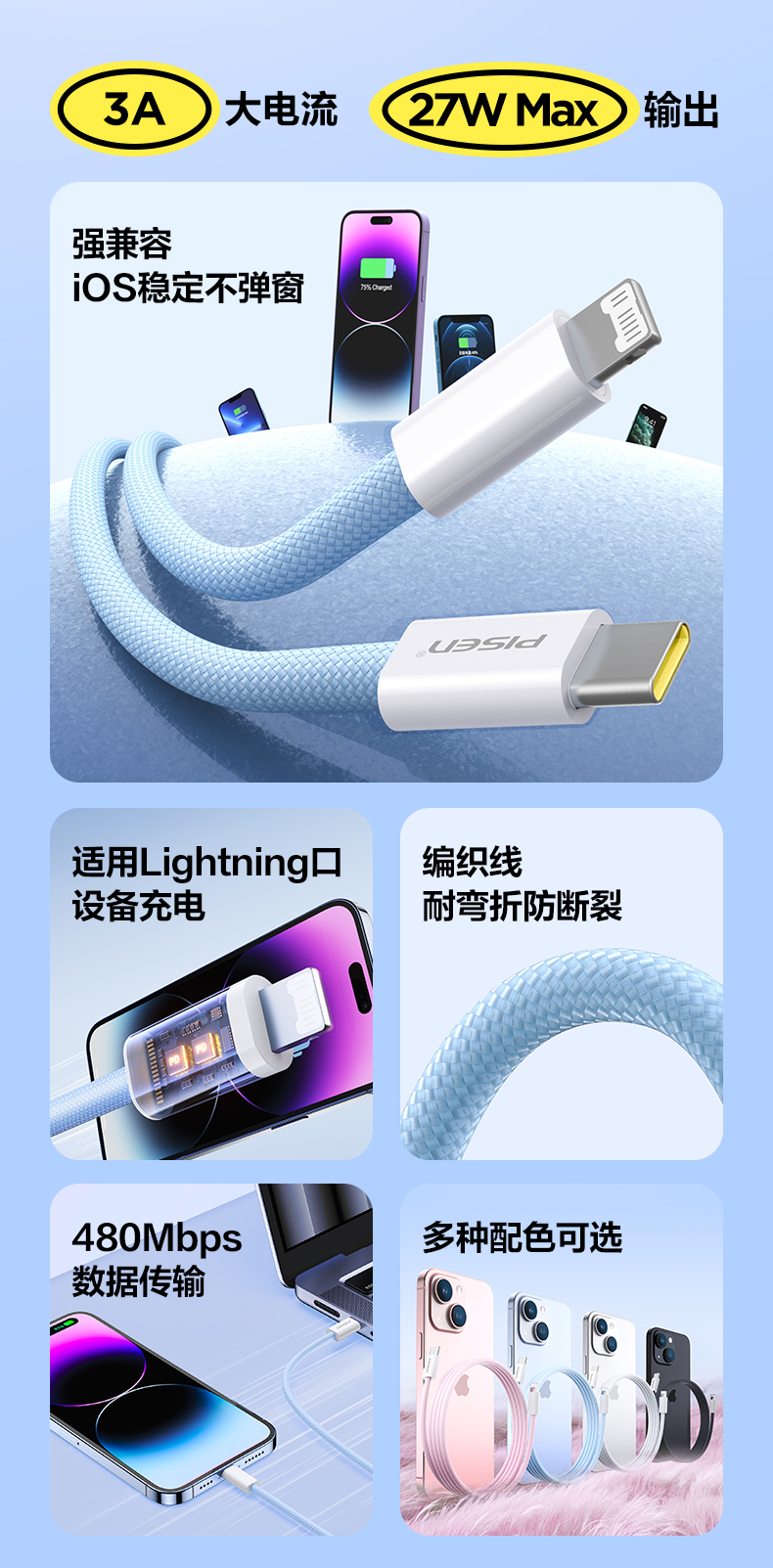 品胜 C to L高密编织27W快充线1.2米/2米 支持数据线传输苹果8-14设备充电
