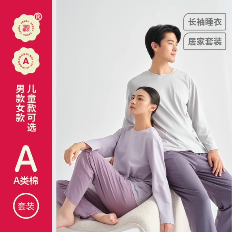 可肉KEROU成人 A类面料 长袖睡衣套装 新疆长绒棉 柔软舒适