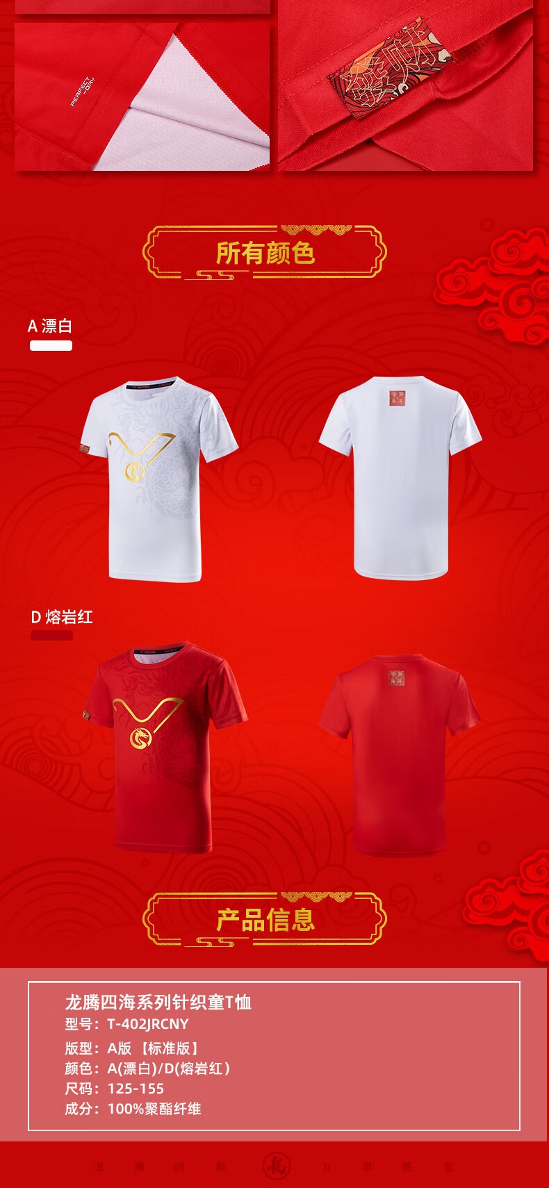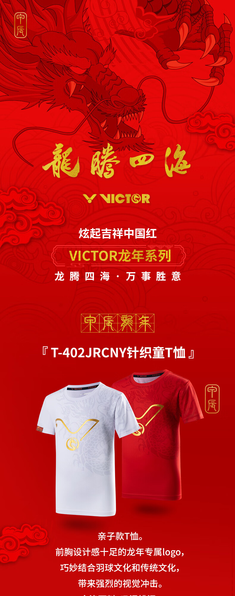 胜利威克多 龙腾四海系列 儿童 针织T恤 T-402JRCNY