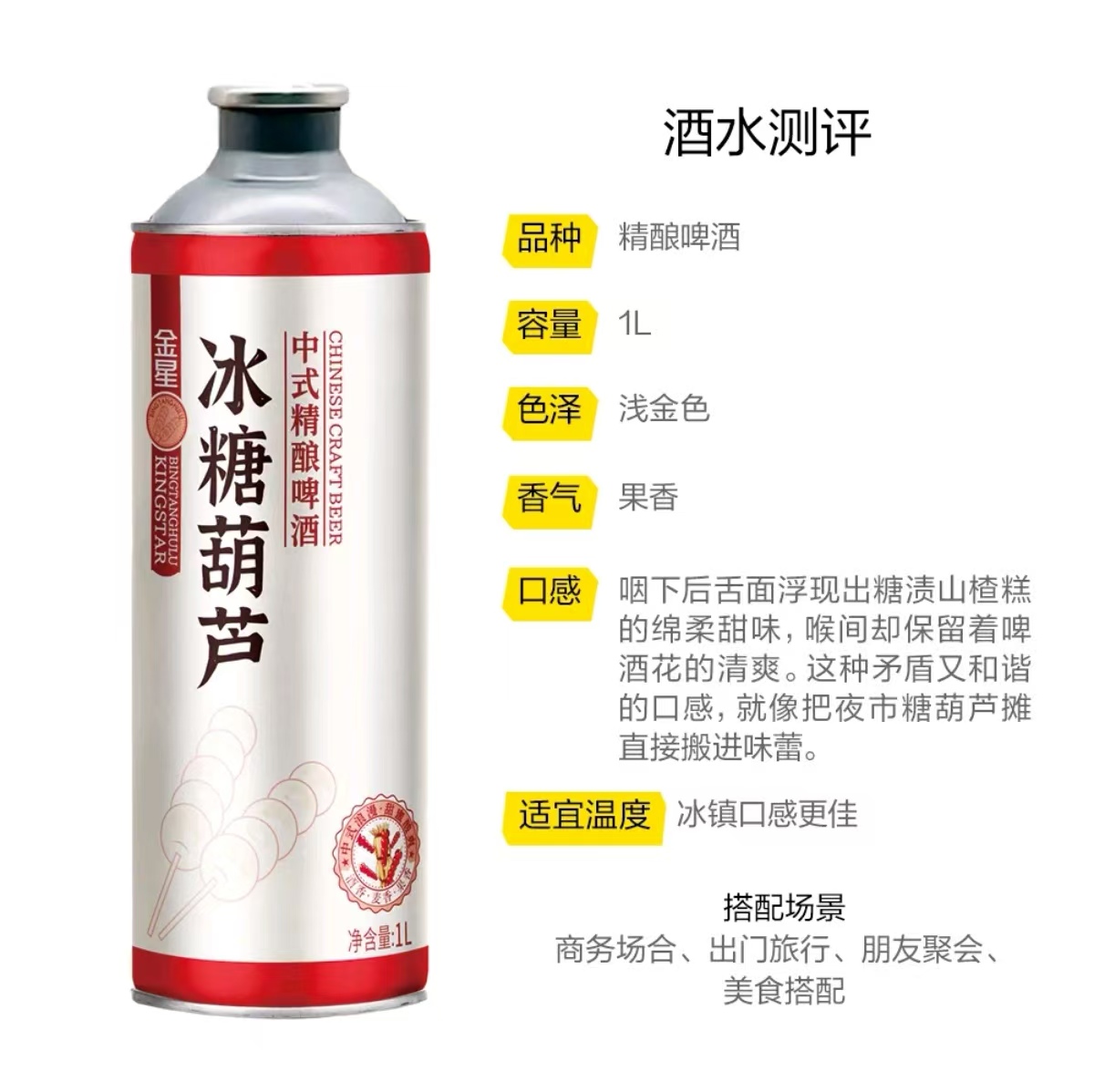 金星 冰糖葫芦中式12°P精酿啤酒1L/罐*6罐 聚会畅饮精酿【整箱】