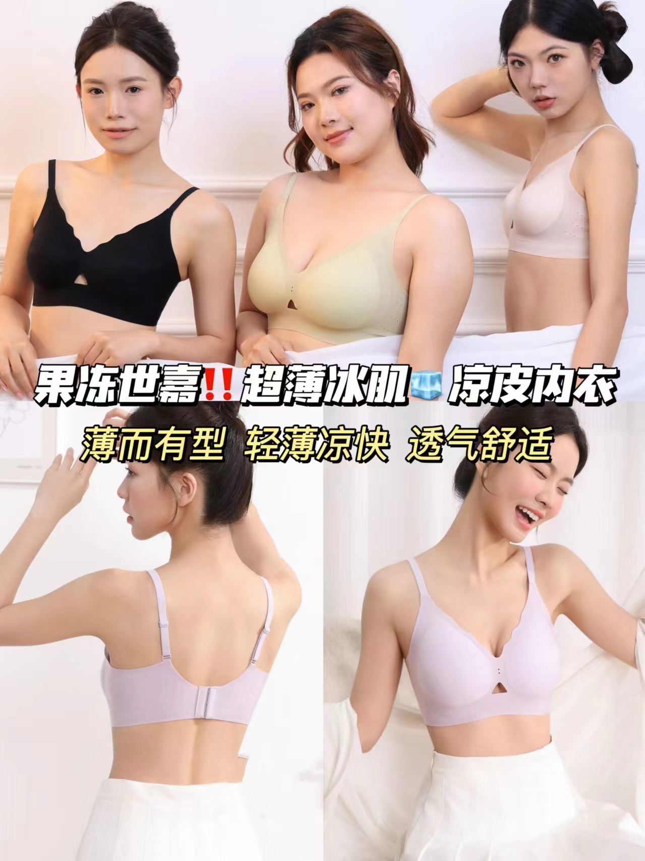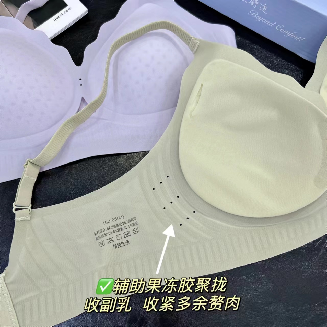 咱厂家直接发,让胸型更加圆润,薄杯之下,是肉眼可见的轻薄透气,无痕果冻胶软支撑底围,更服帖也更舒服,侧收提托收副乳。