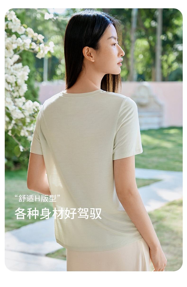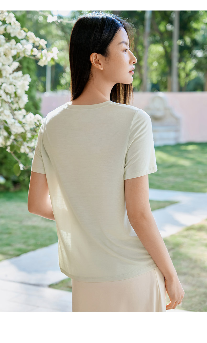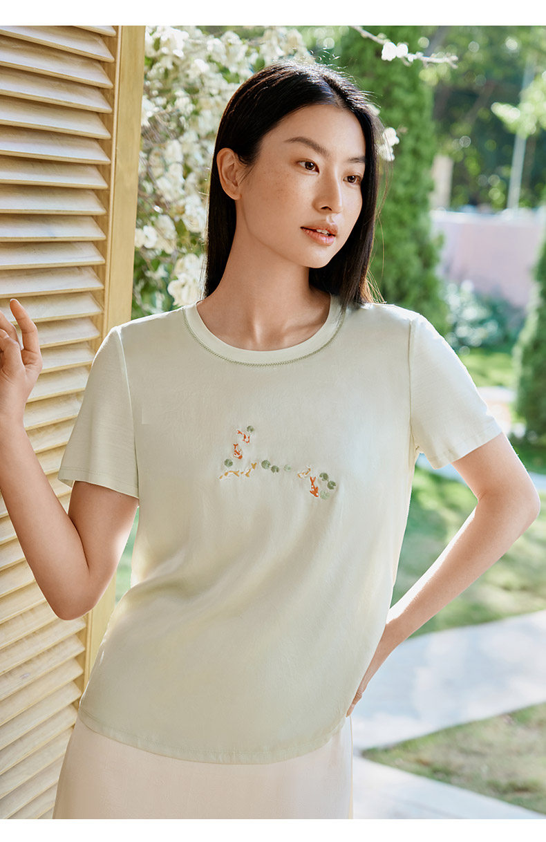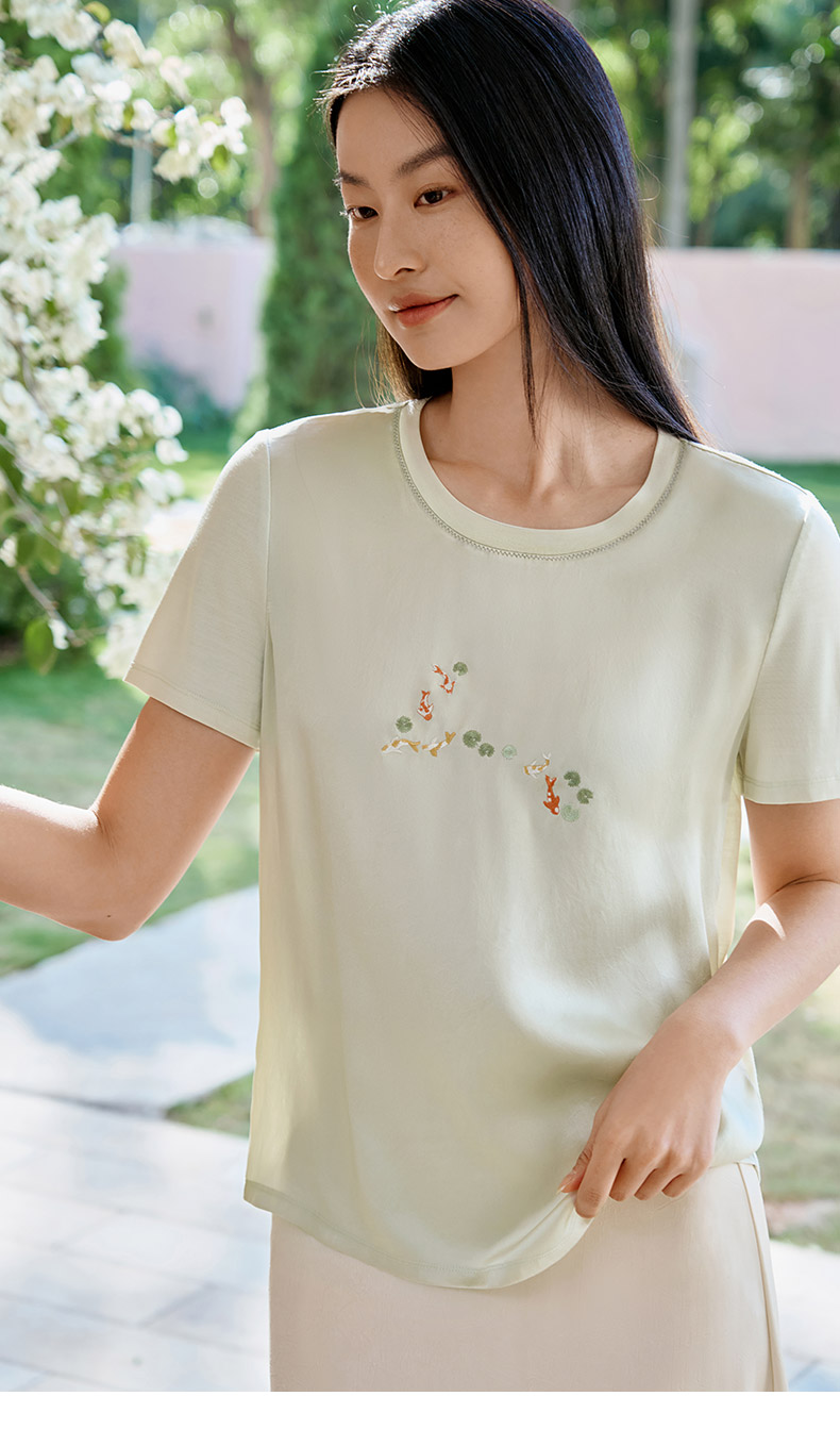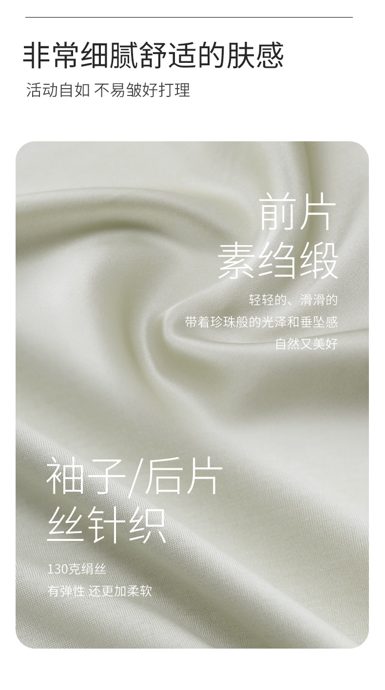 金三塔真丝小衫女100%桑蚕丝简约撞色小圆领宽松透气短袖休闲T恤 YZFFB703