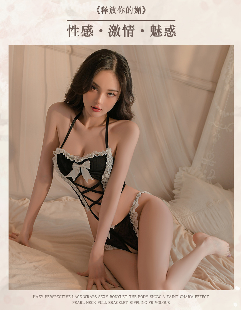 【性感睡裙】诱惑蝴蝶结绑带女仆连体衣 深v纯欲诱惑性感甜美情趣内衣睡衣6854